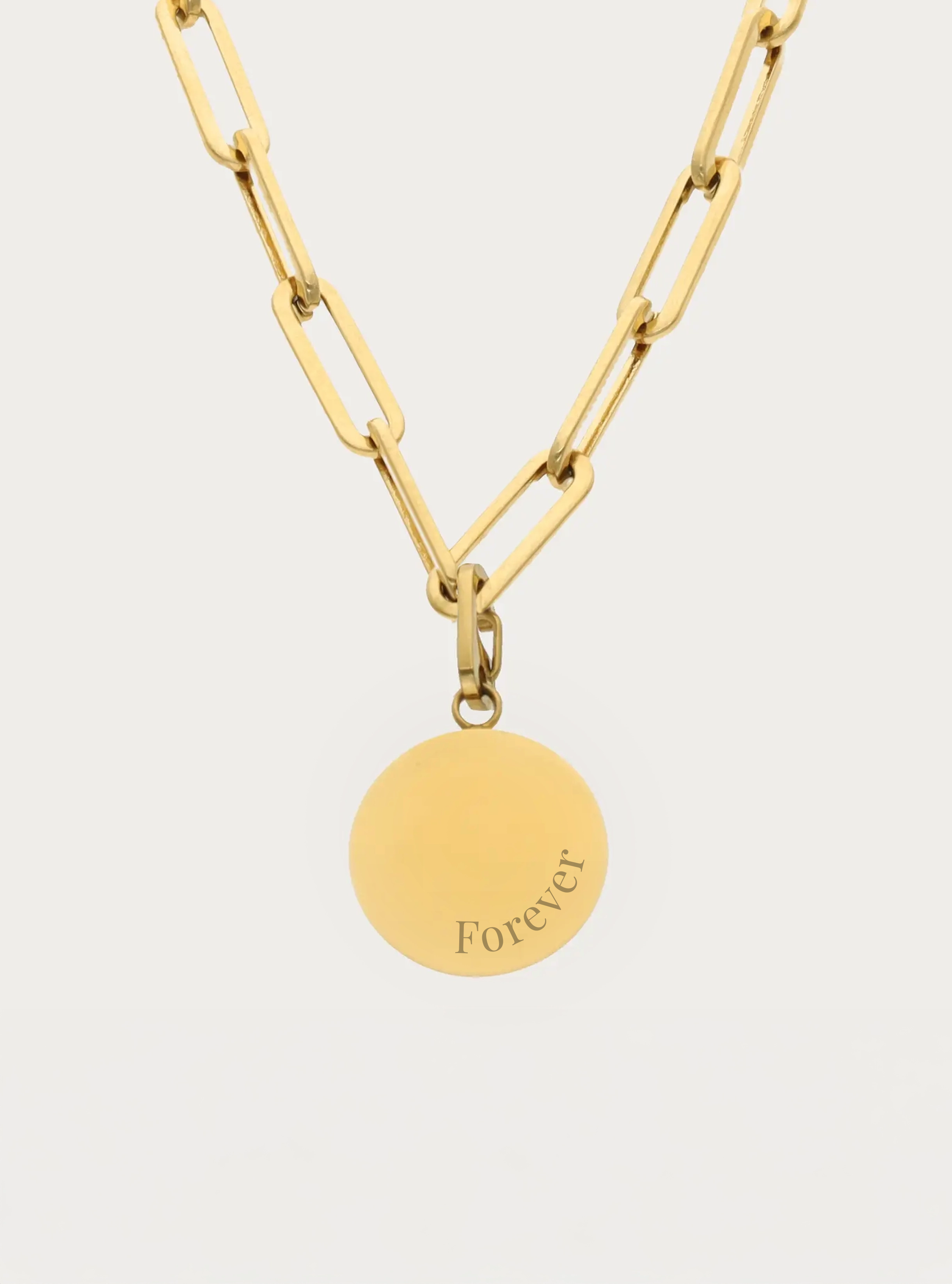 Schakelketting met graveerbare ronde bedel - 15 mm - ronde tekst