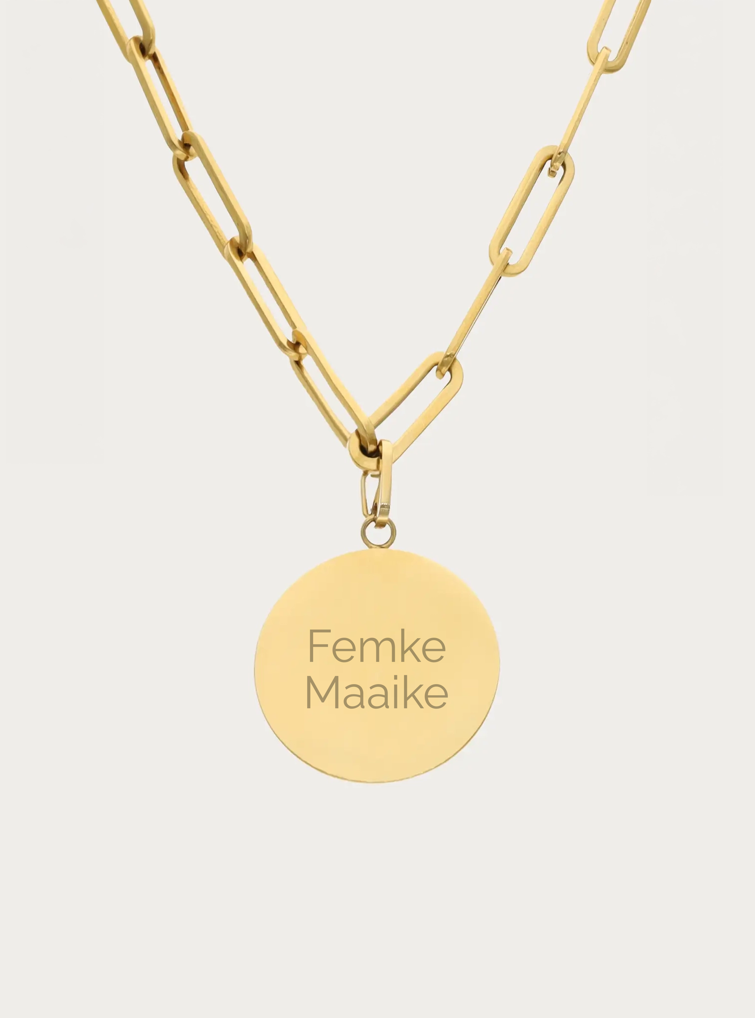 Schakelketting met graveerbare ronde bedel - 20 mm - 2 of 3 namen