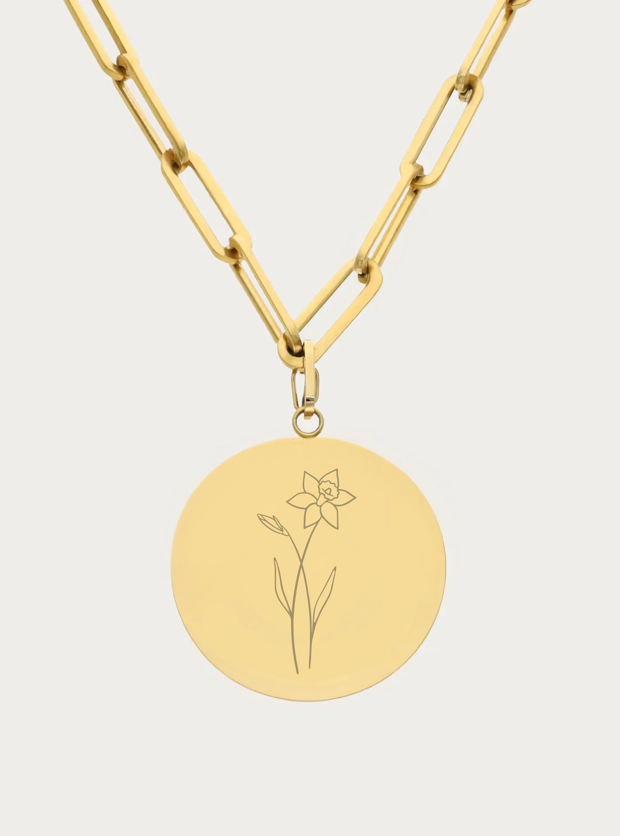 Schakelketting met graveerbare ronde bedel - 25 mm - birthflower