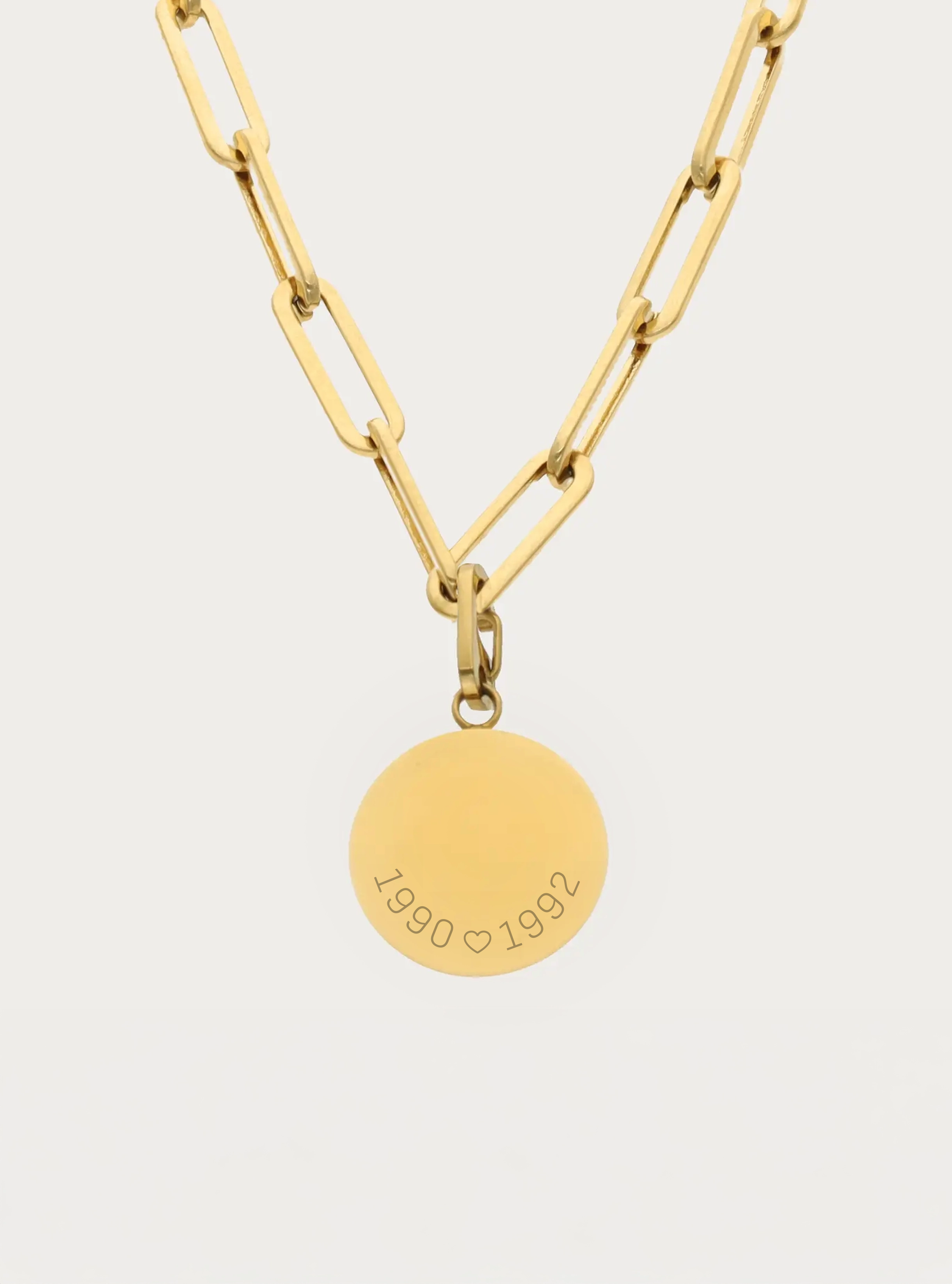 Schakelketting met graveerbare ronde bedel - 15 mm - jaartallen met hartje