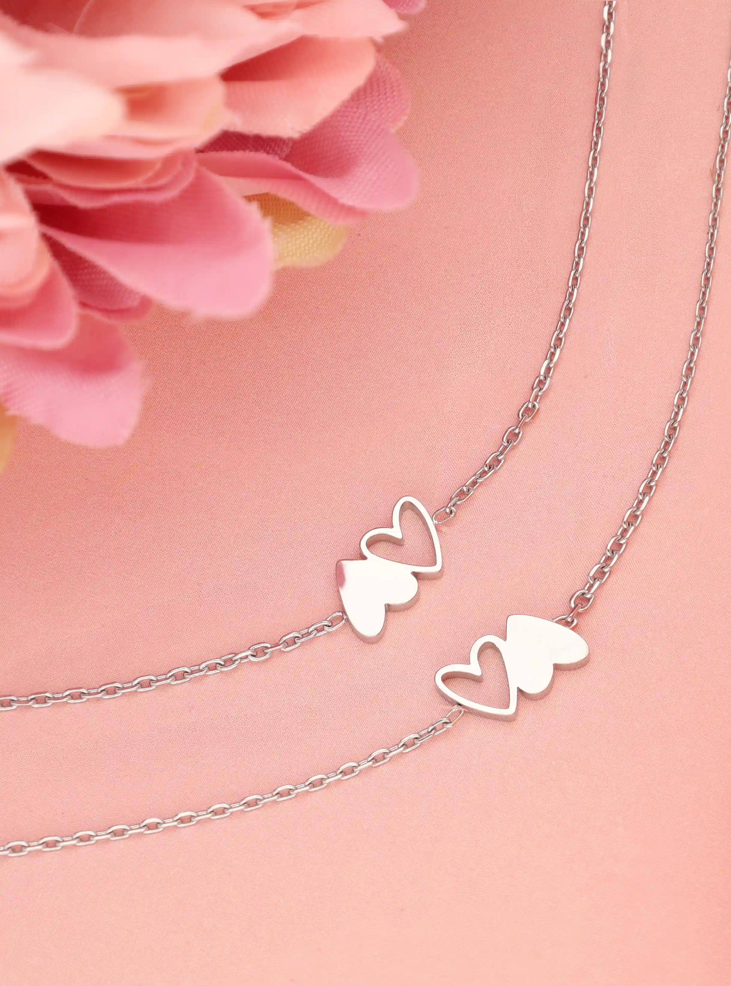 Kettingen set met twee hartjes - Forever Happiness
