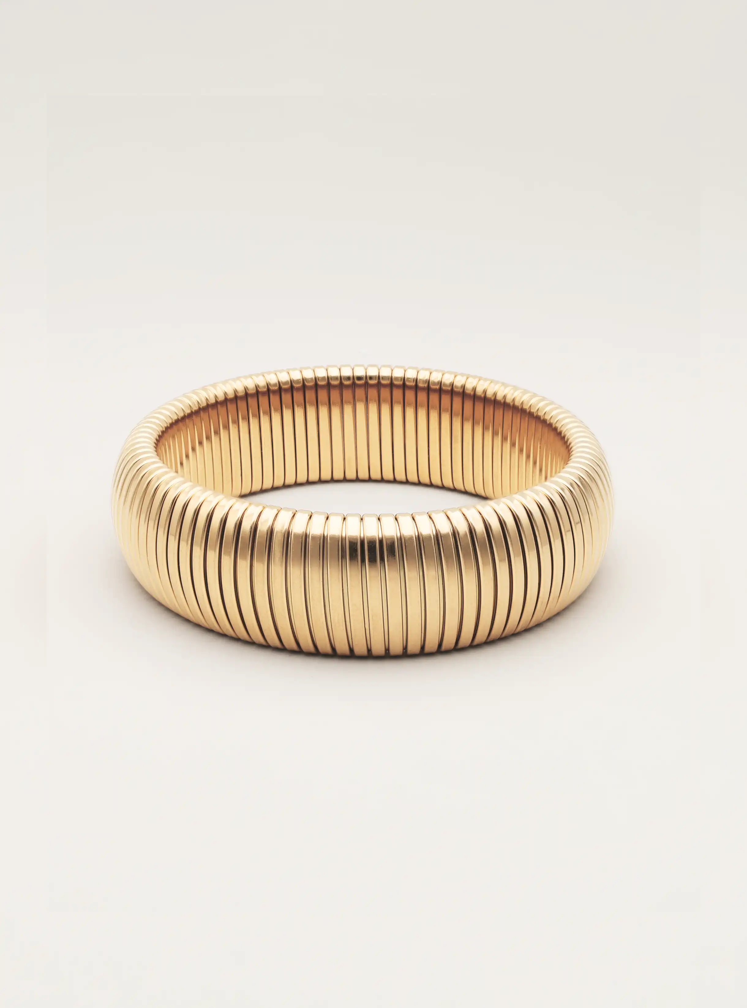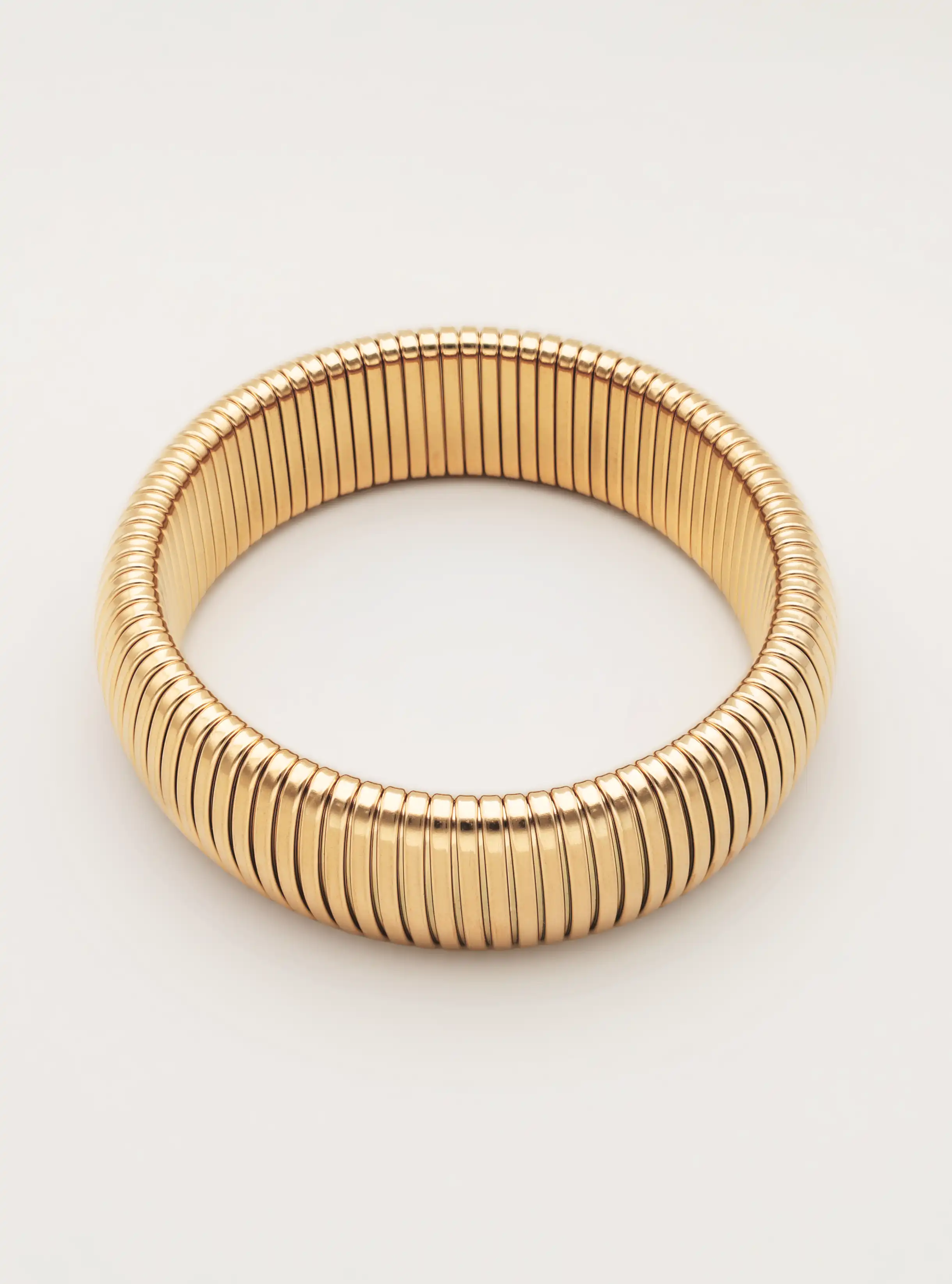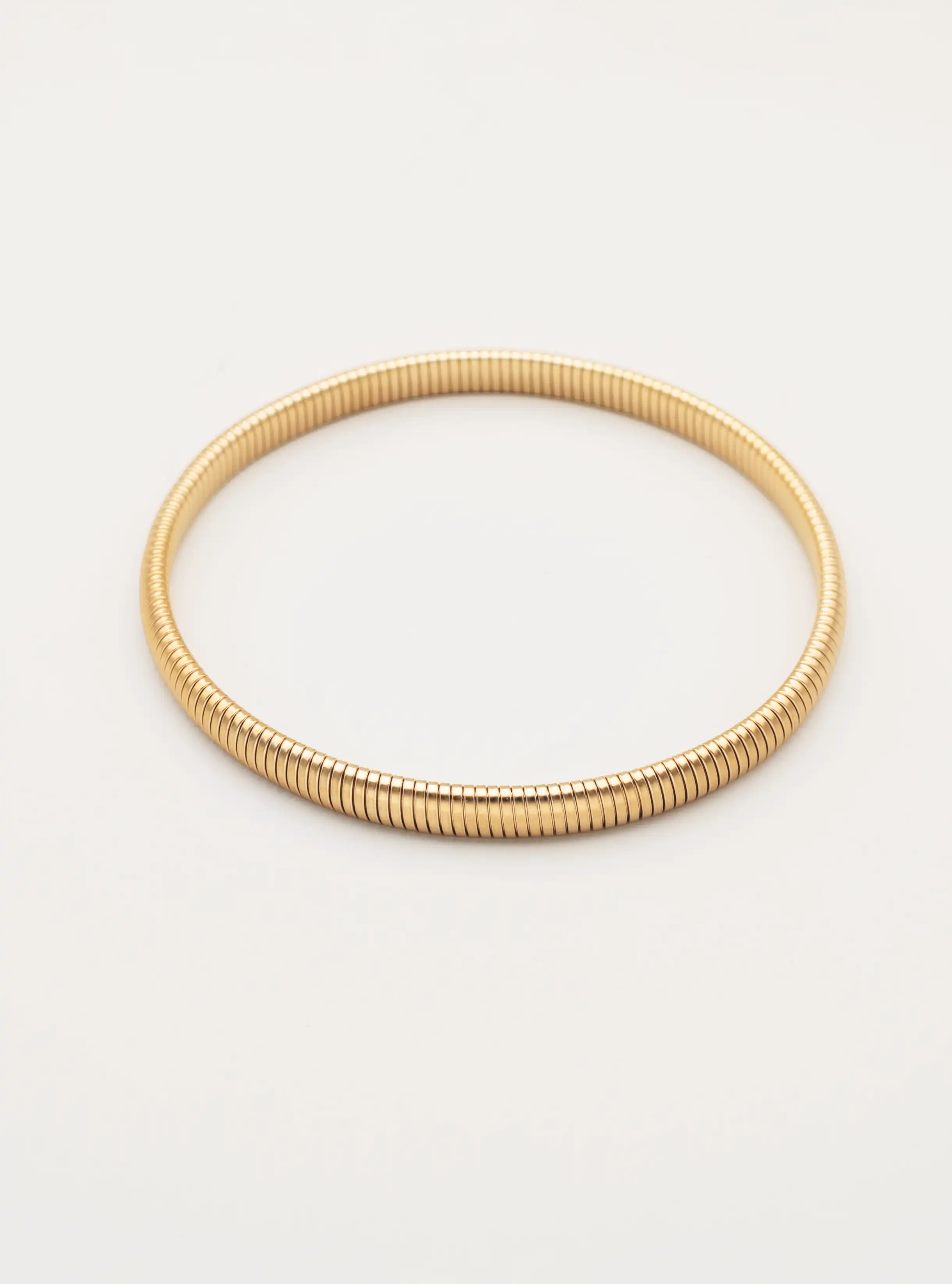 Een bangle is een armband met een vaste ronde vorm die je eenvoudig om je pols schuift.