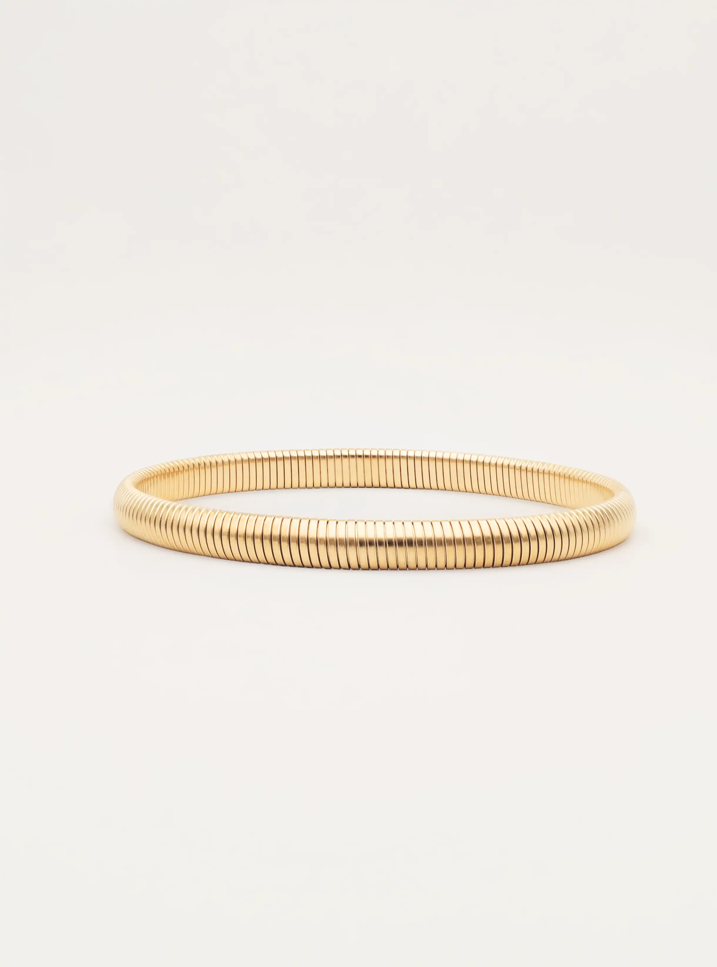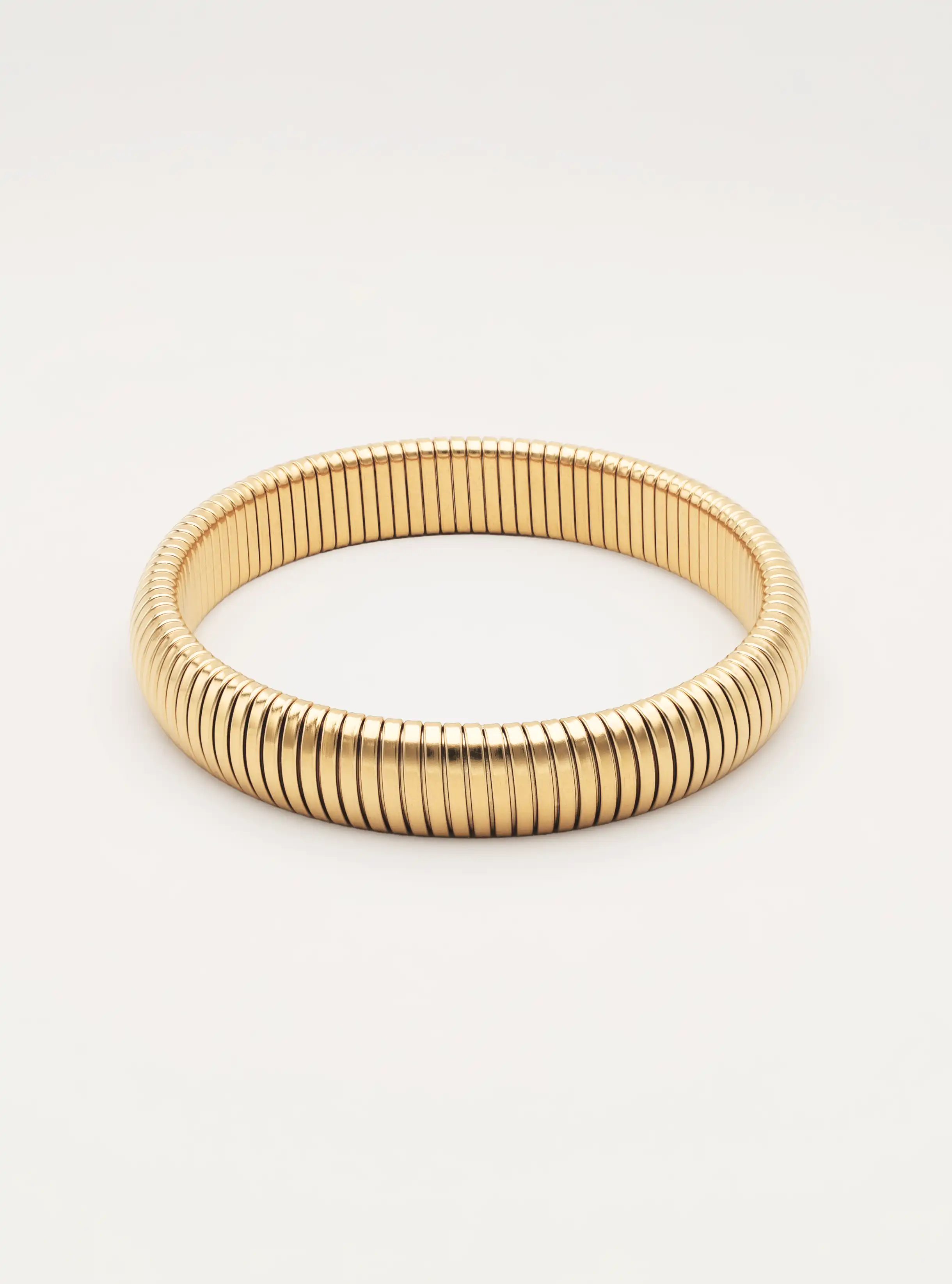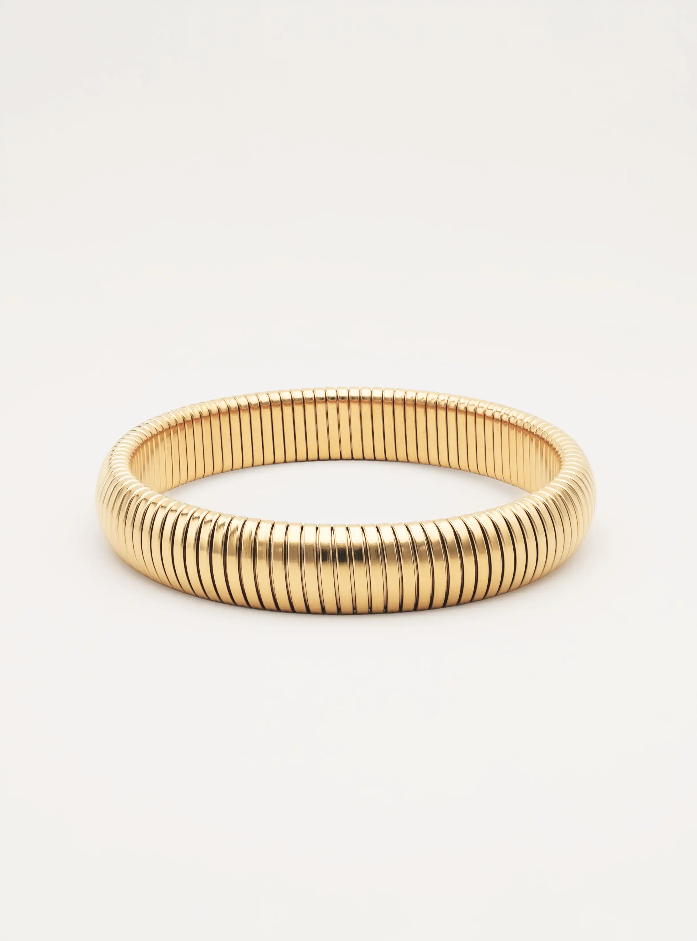 Een bangle is een armband met een vaste ronde vorm die je eenvoudig om je pols schuift.