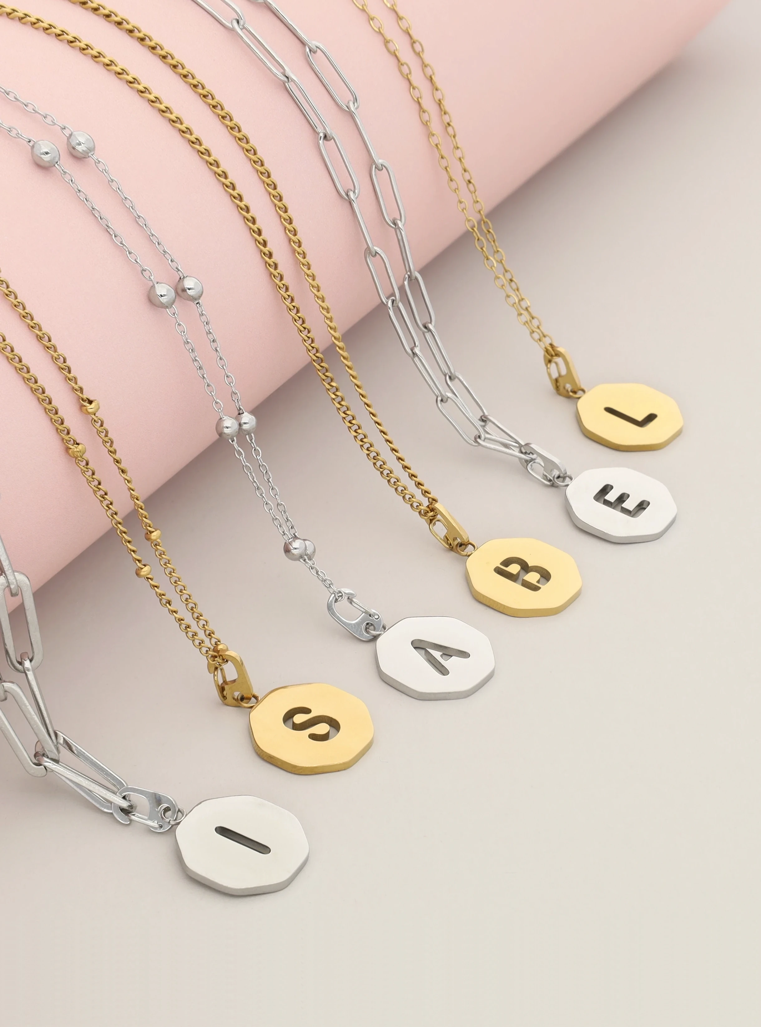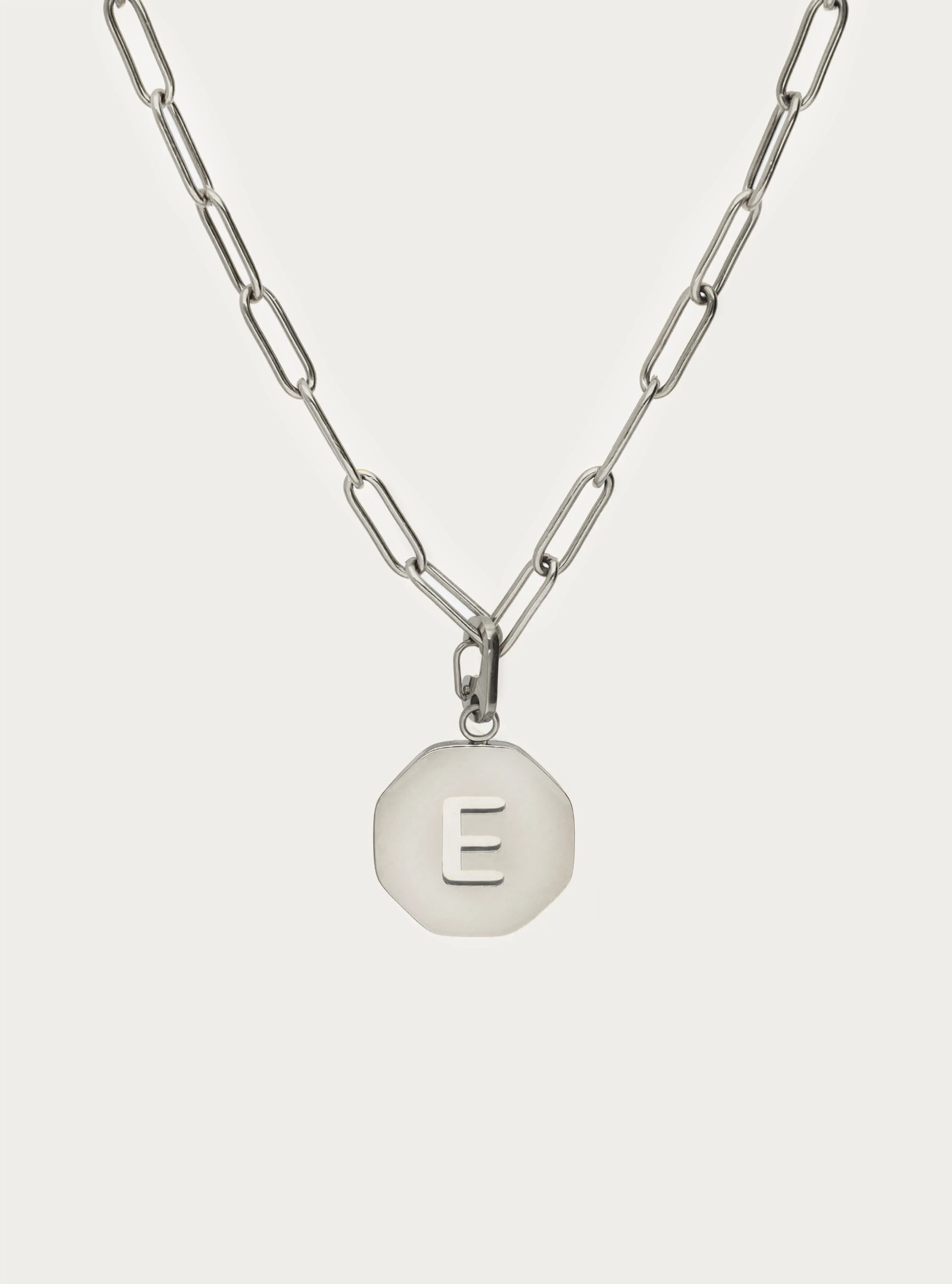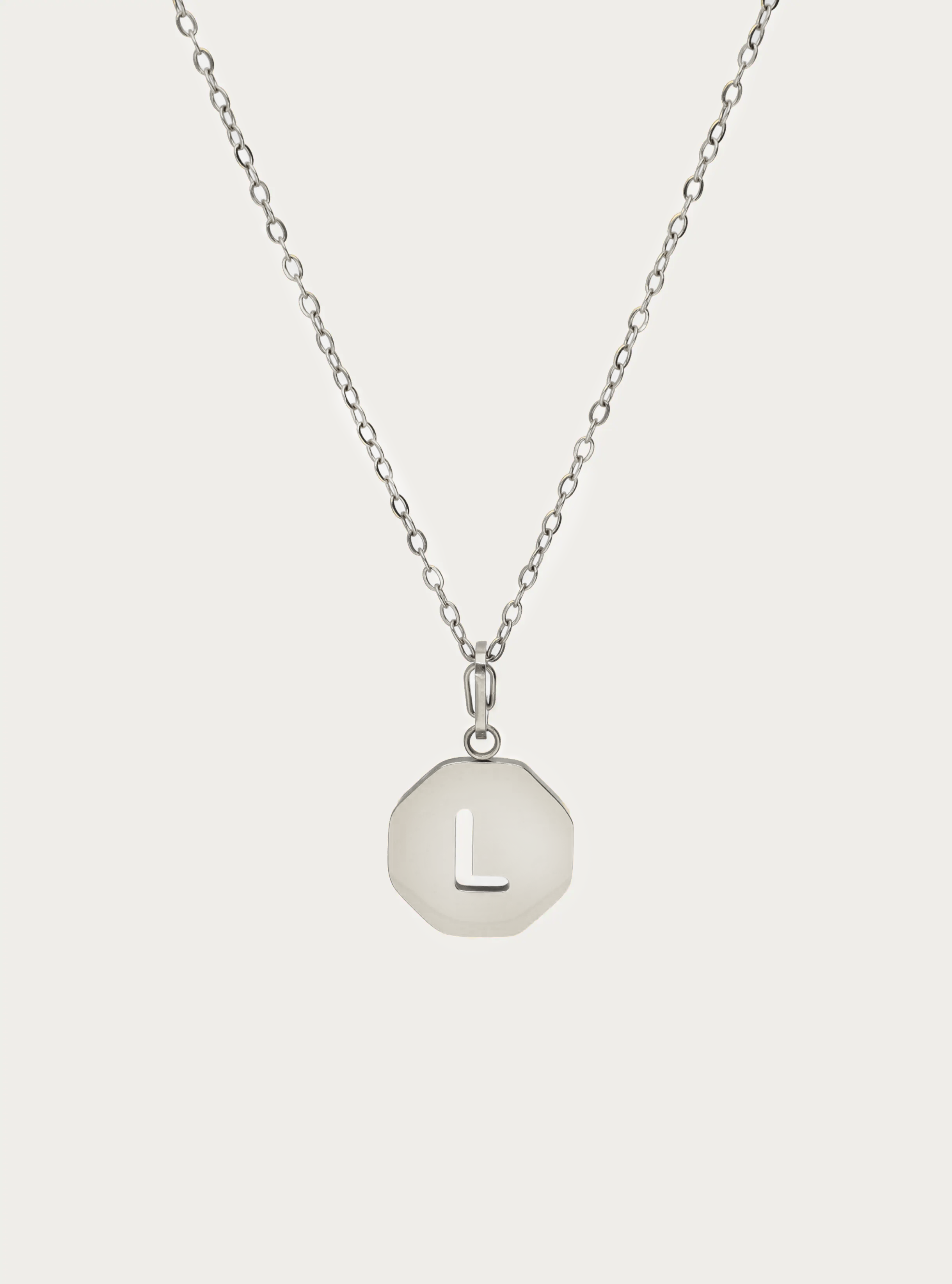 Fijne schakelketting met octagon initiaal bedel