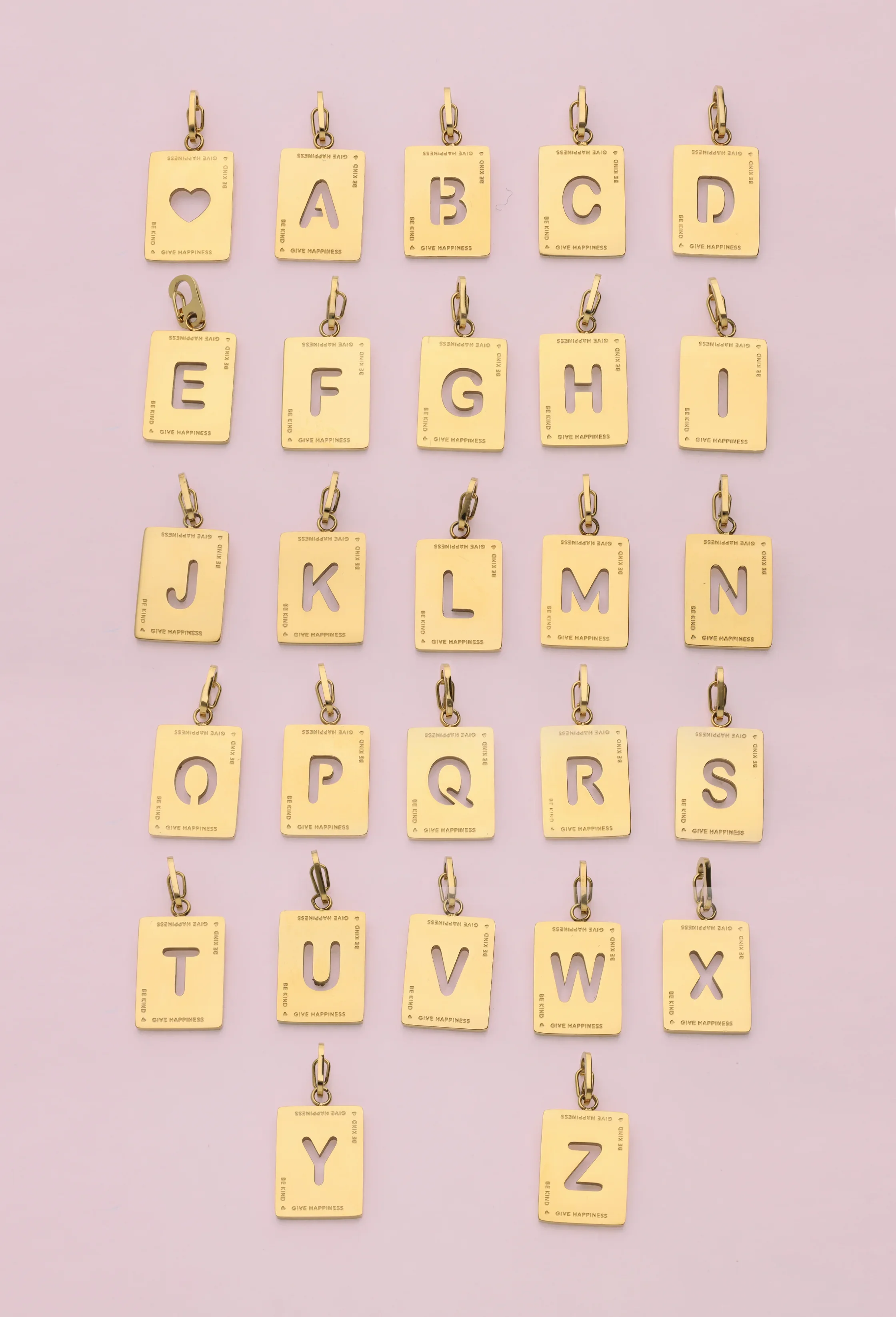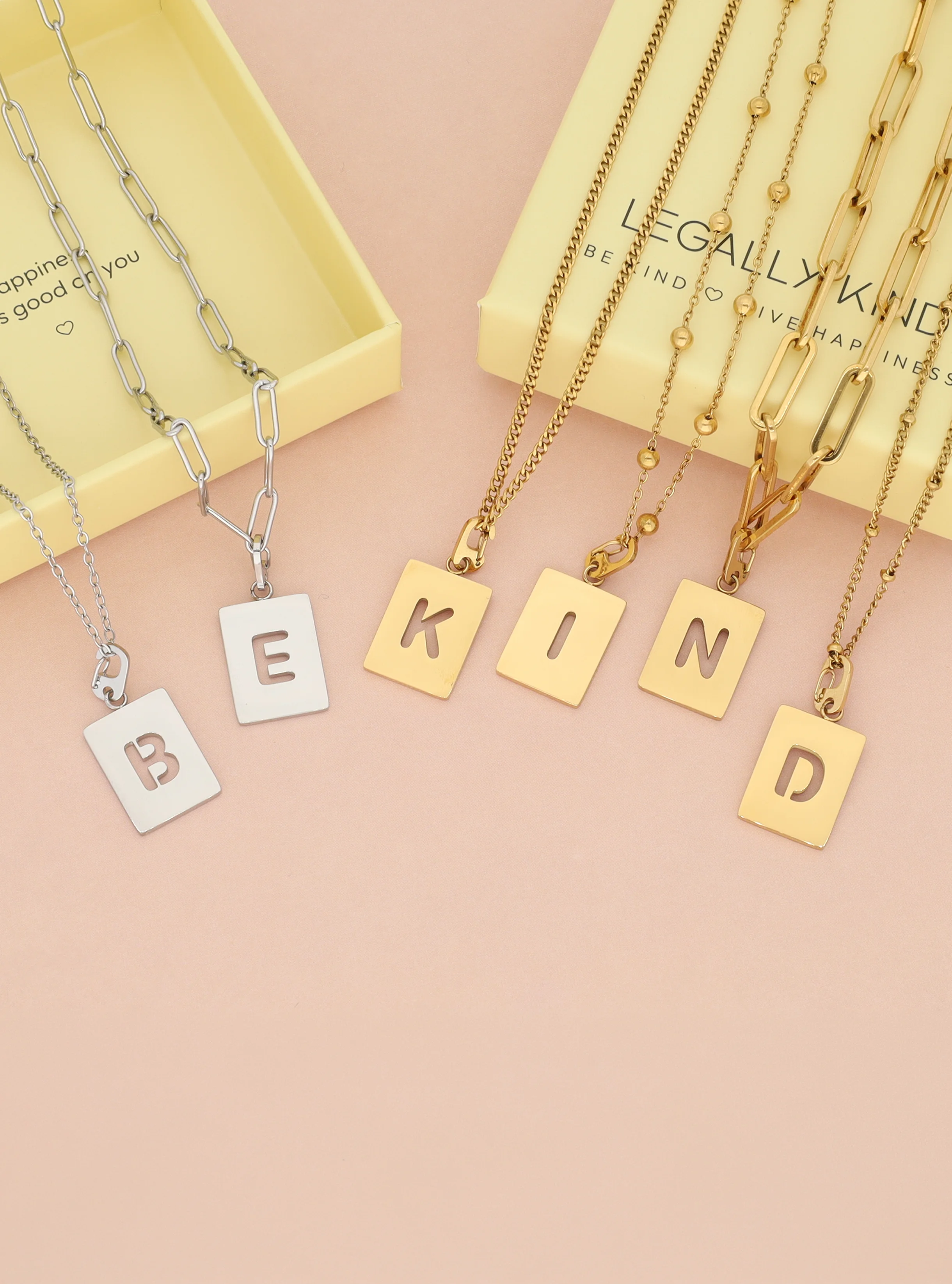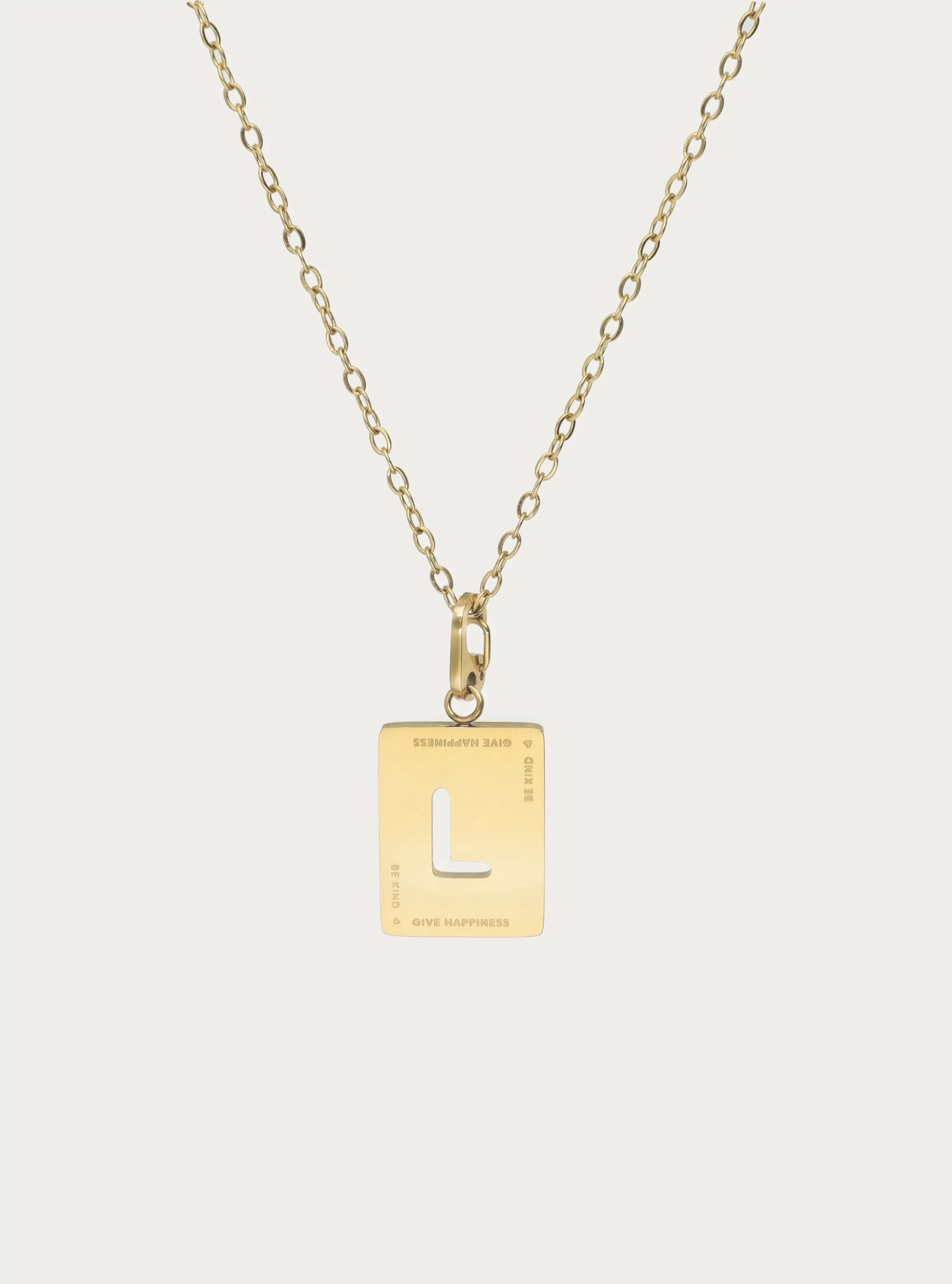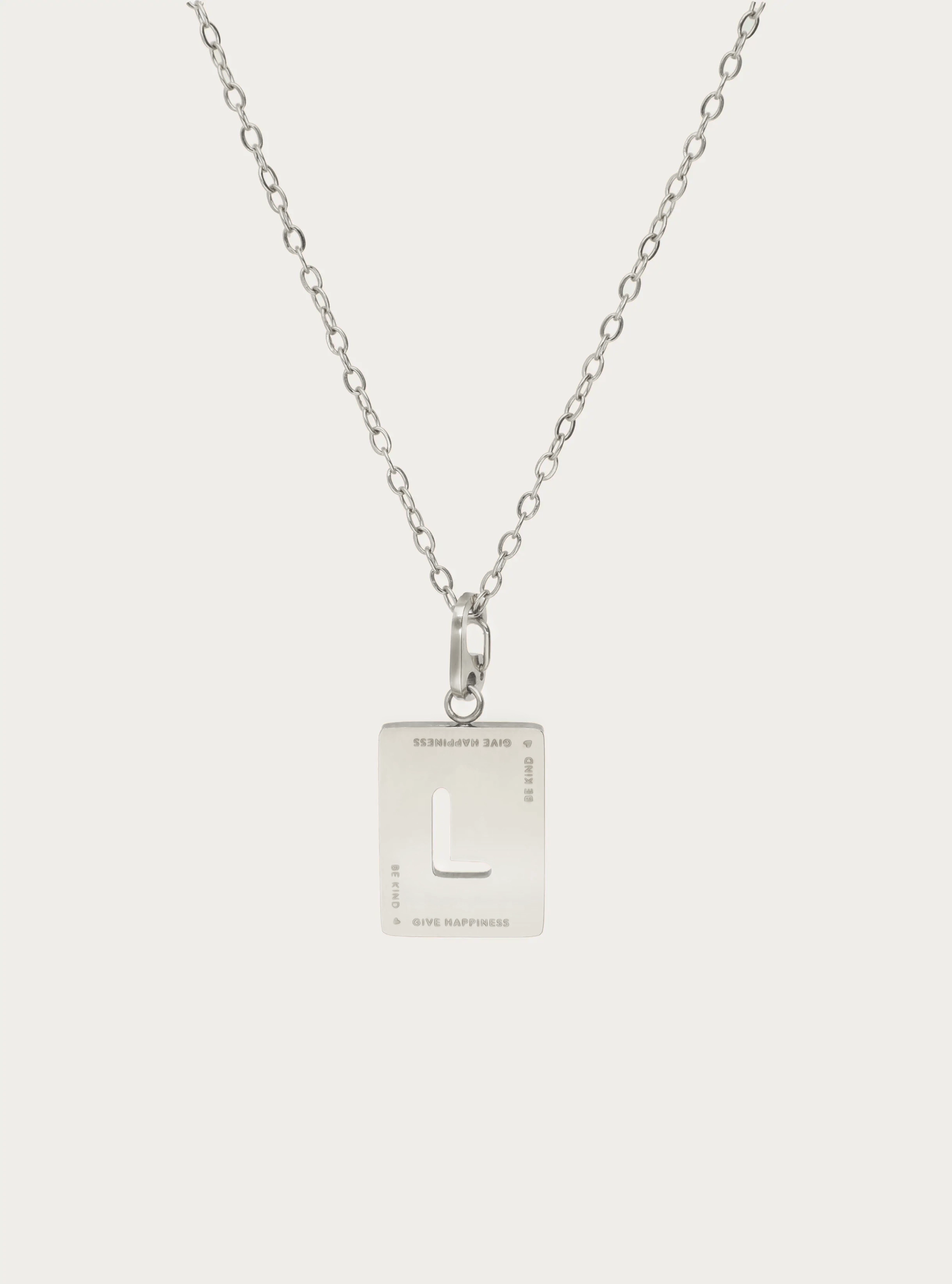Fijne schakelketting met rechthoekige initiaal bedel 'be kind'