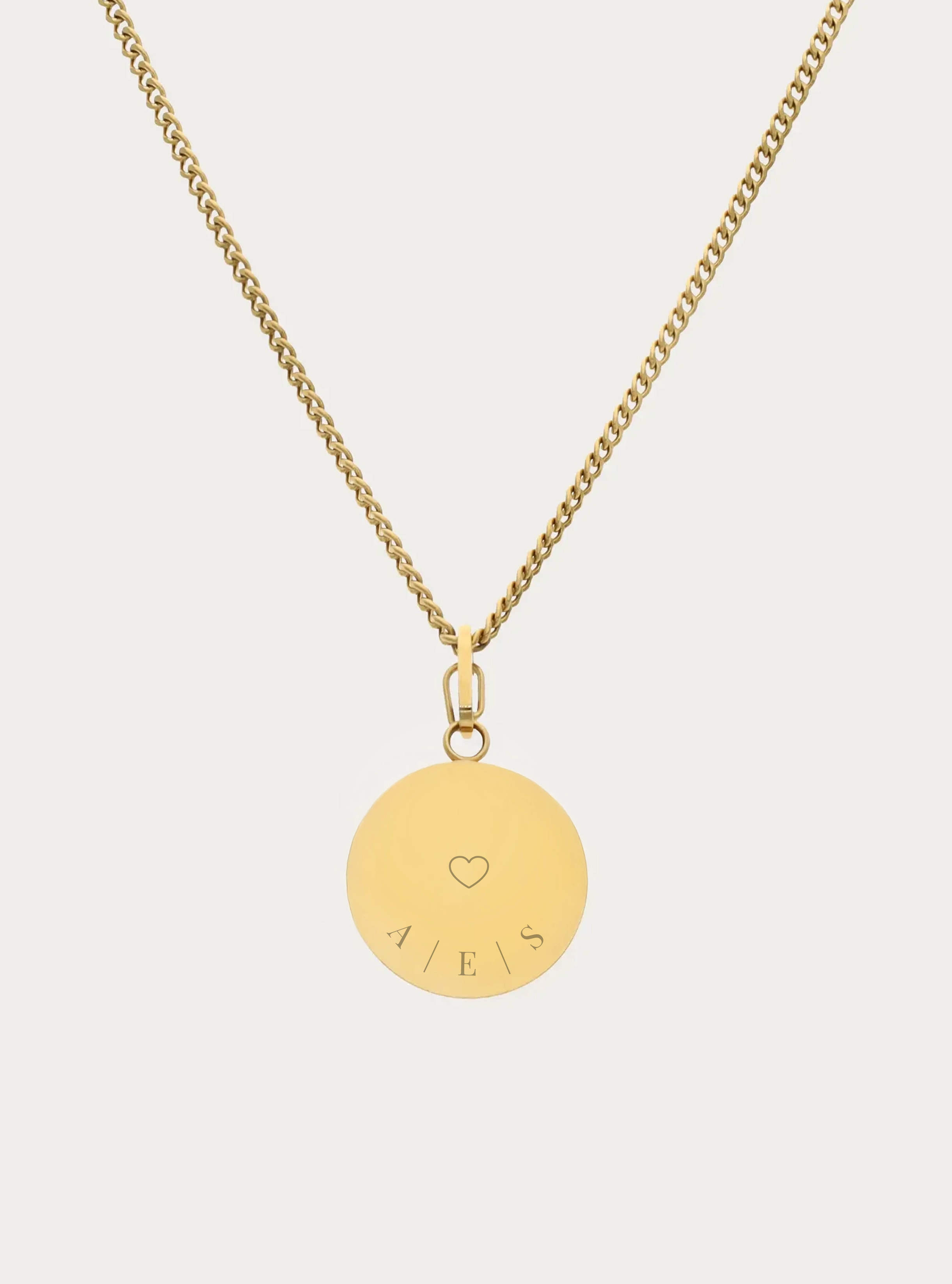 Bolletjesketting (groot) met graveerbare ronde bedel - 25 mm - 3 of 4 initialen met kruis en hartje