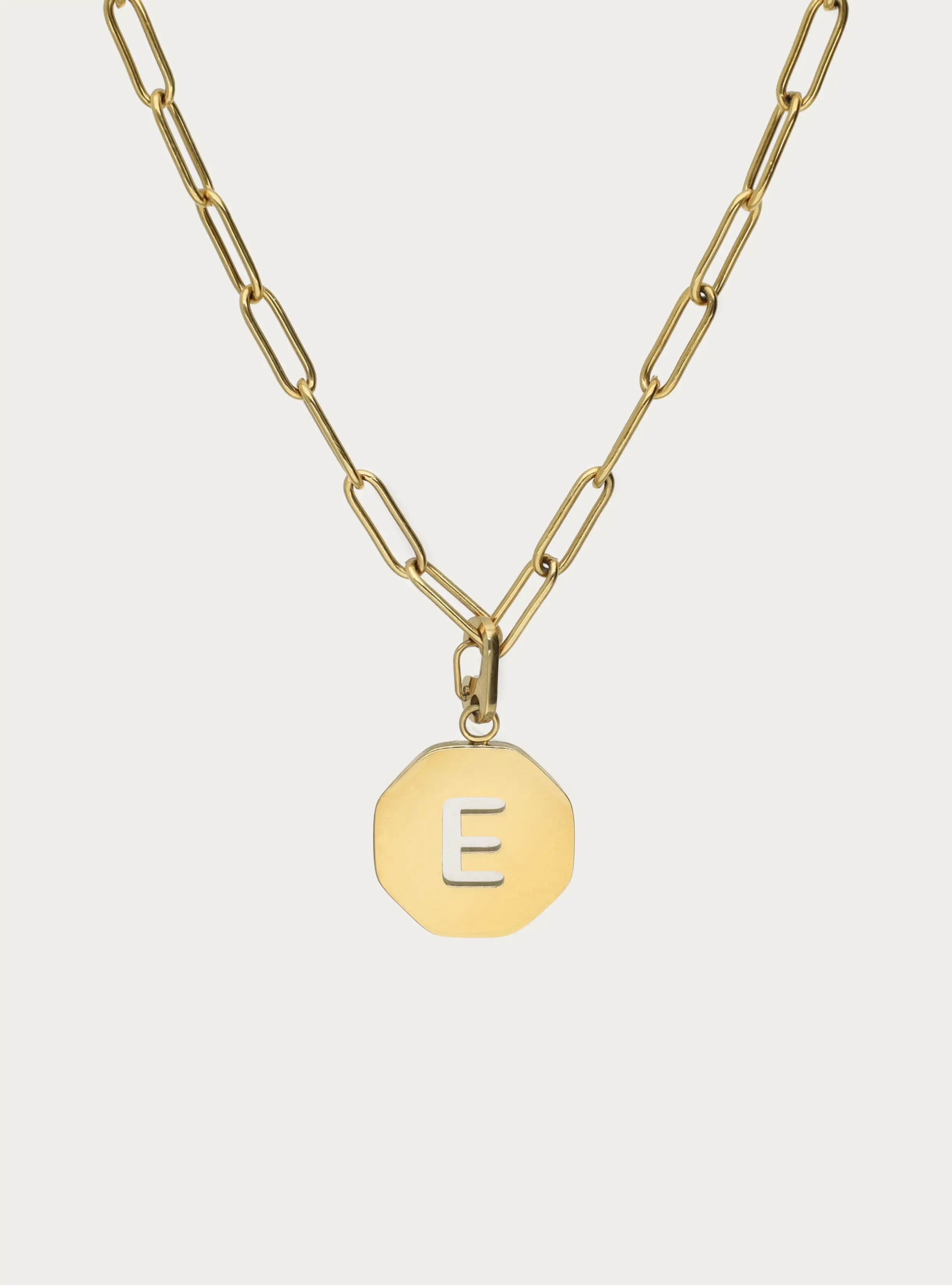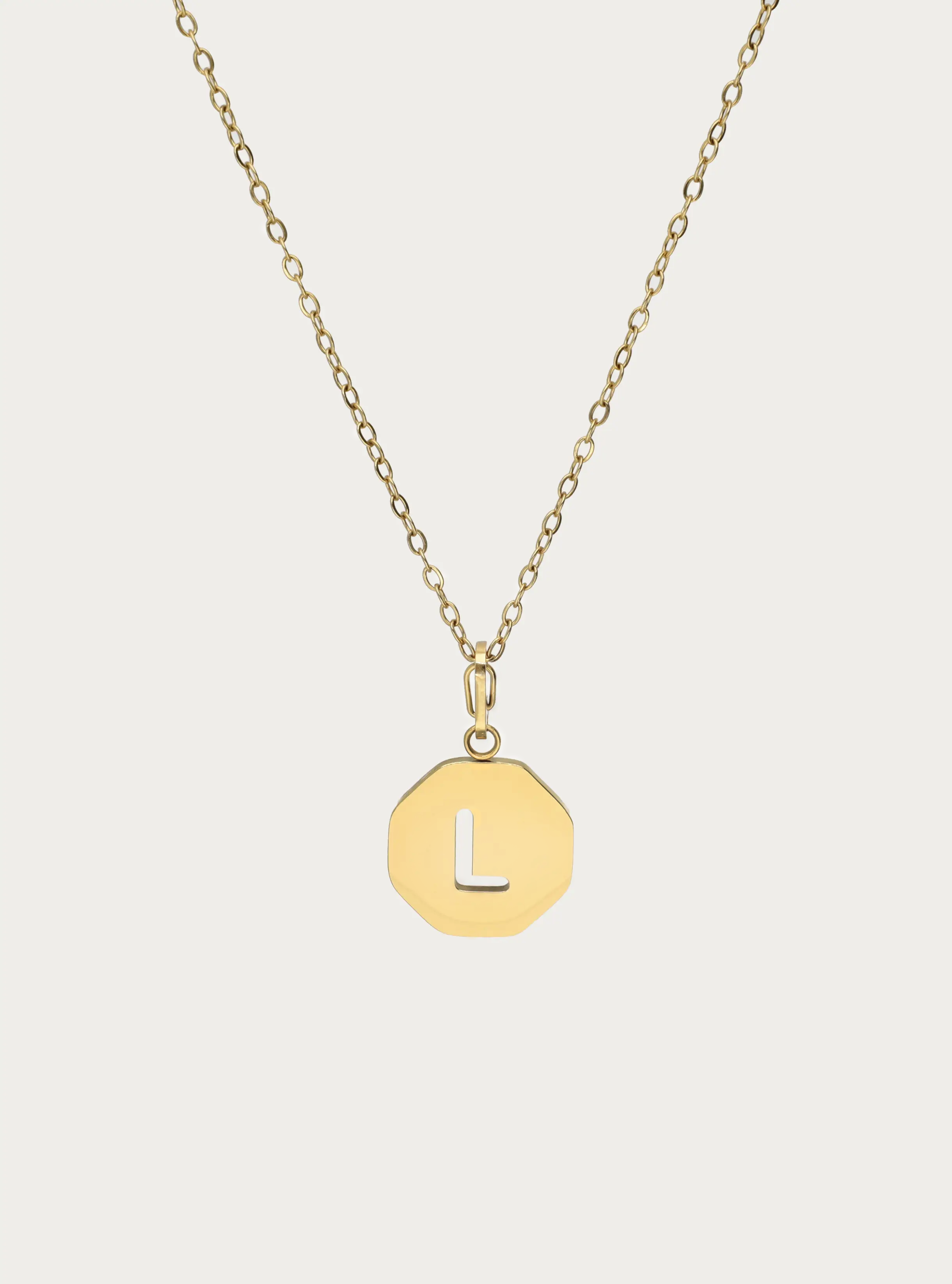 Ketting kleine schakel met octagon initiaal bedel