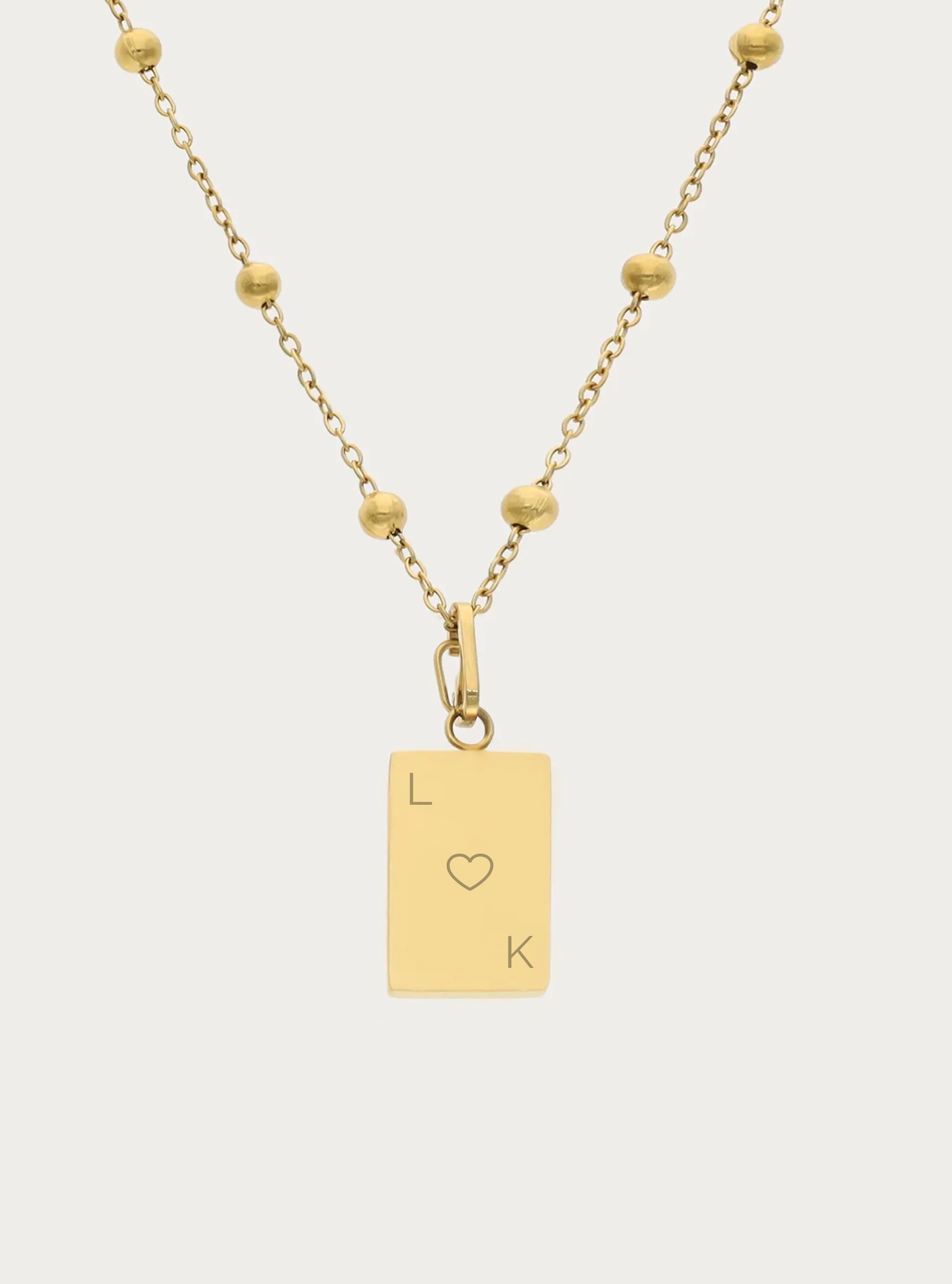 Bolletjesketting (groot) met graveerbare hartvormige bedel - 10 mm - initiaal