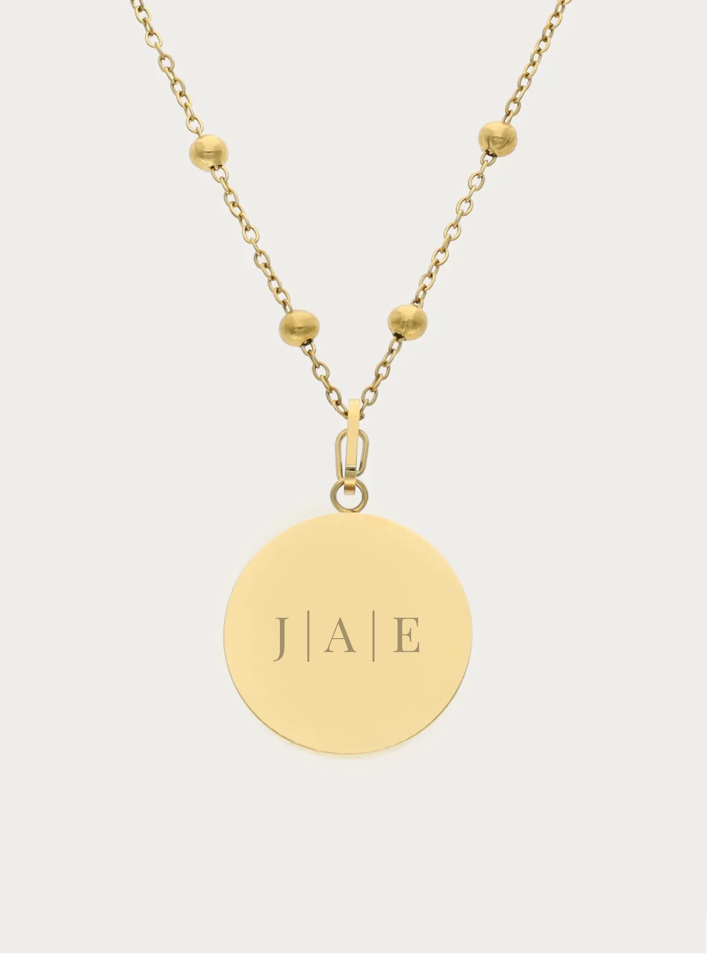 Bolletjesketting (groot) met graveerbare ronde bedel - 20 mm - 3 initialen met streepjes