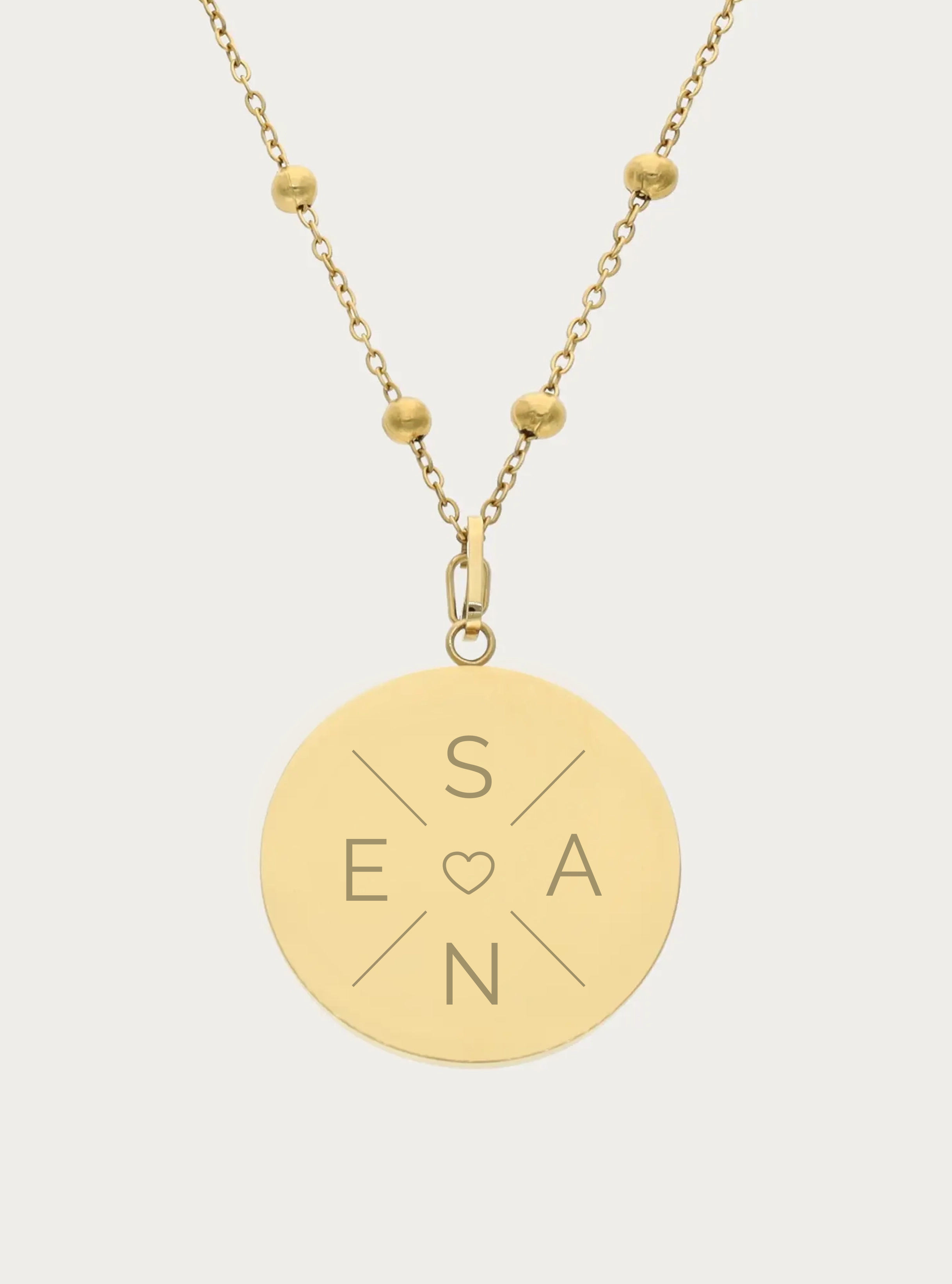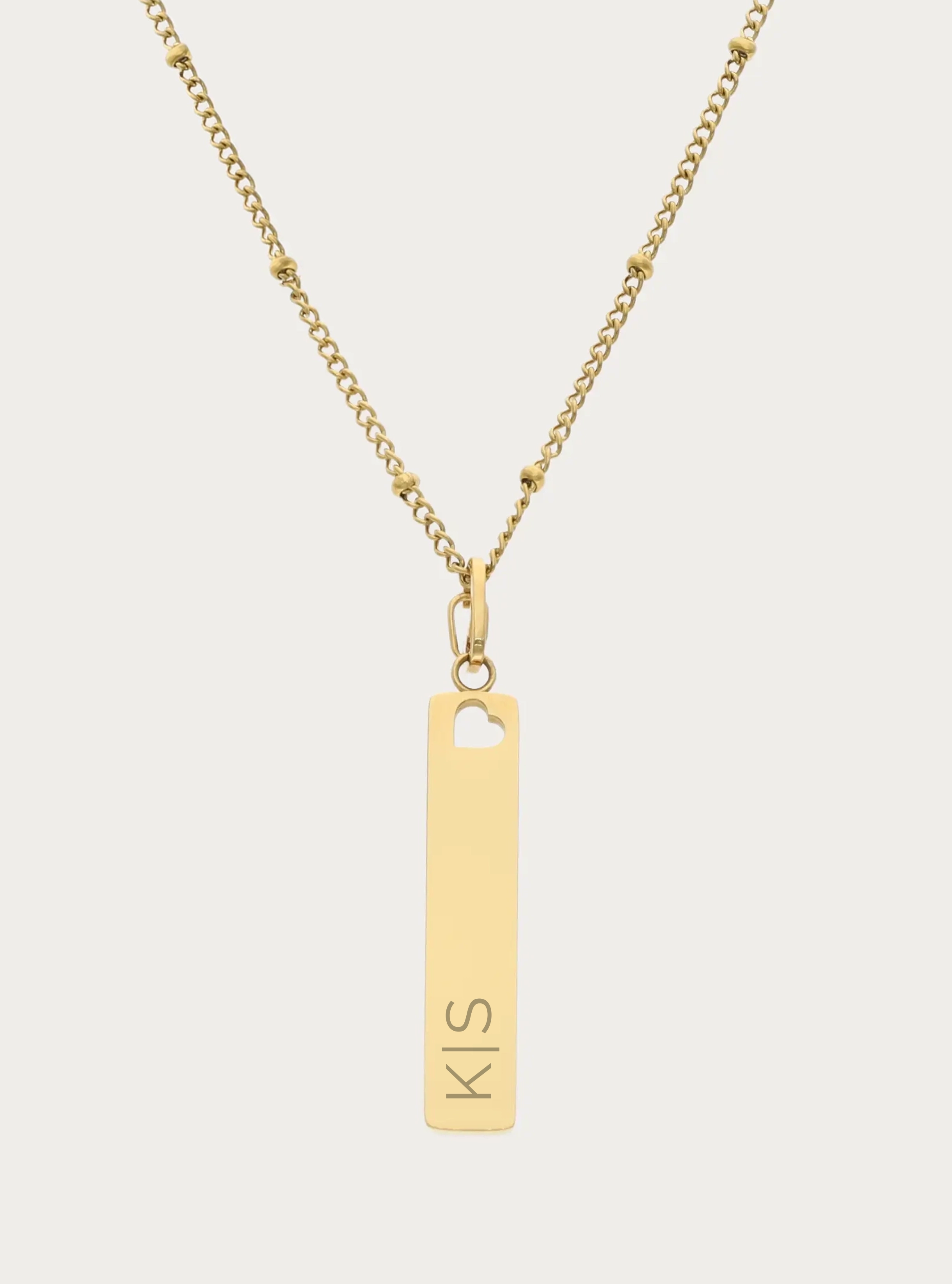 Bolletjesketting (groot) met graveerbare hartvormige bedel - 14 mm - initiaal