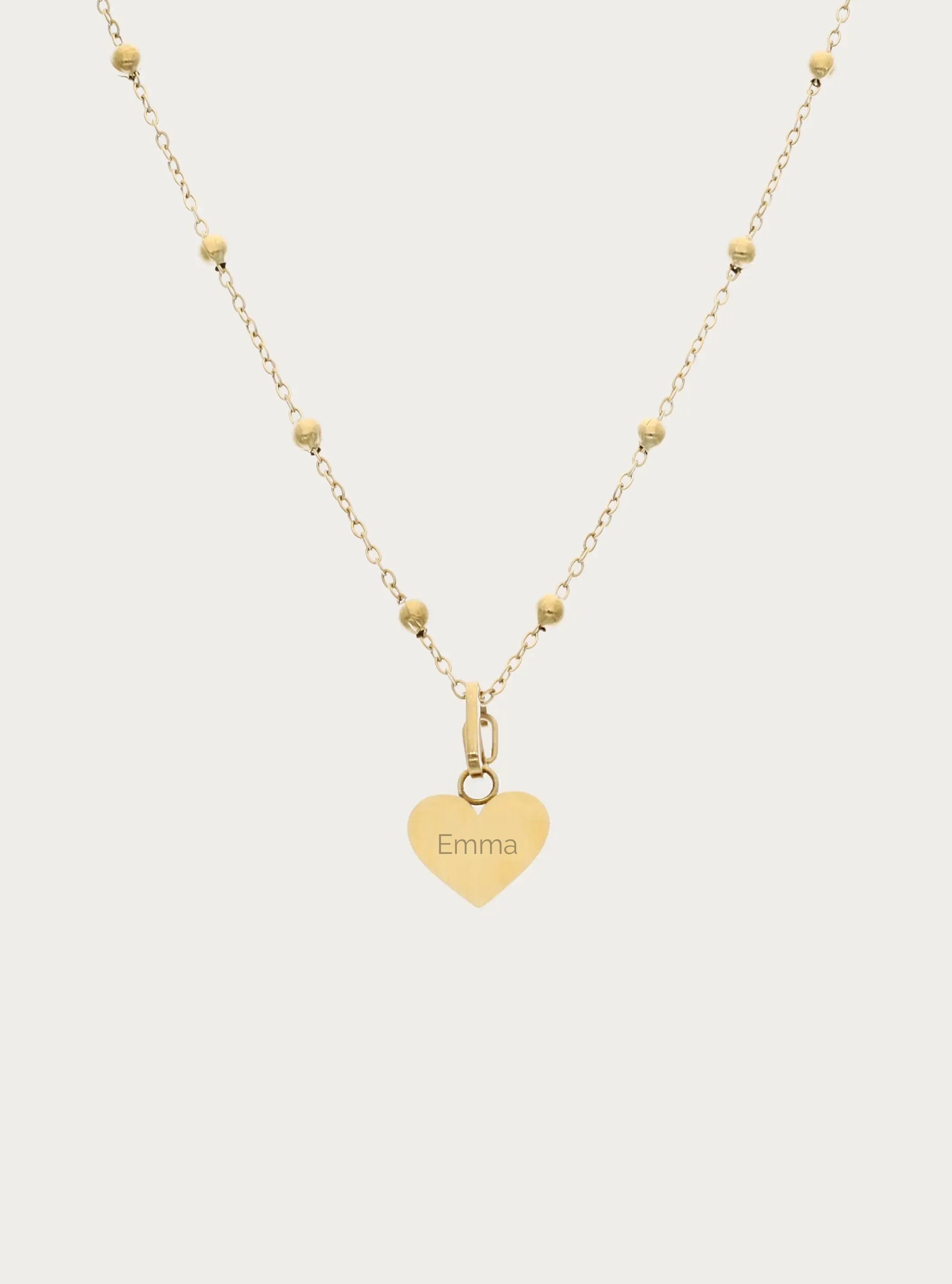 Bolletjesketting (groot) met graveerbare hartvormige bedel - 10 mm - naam