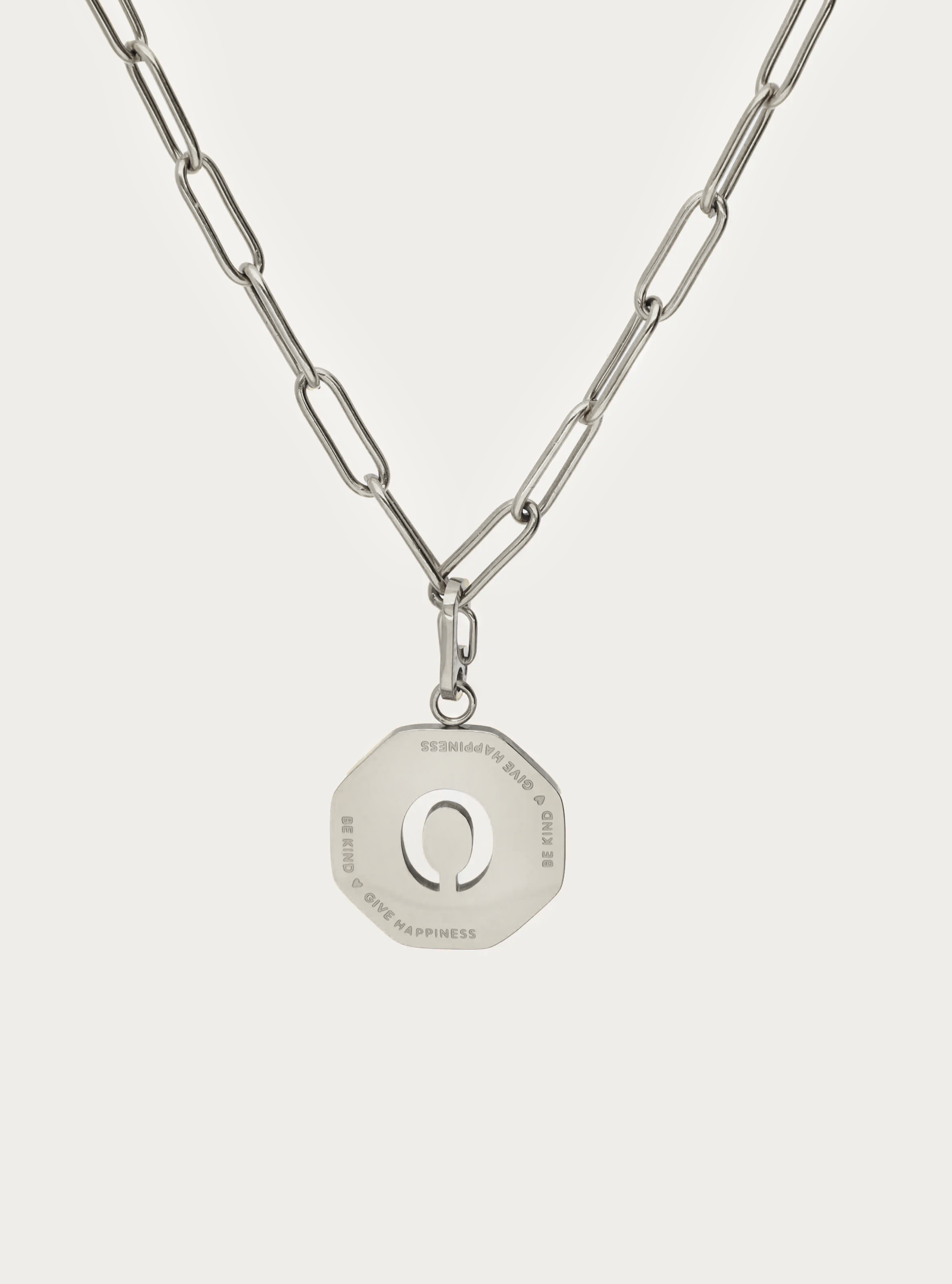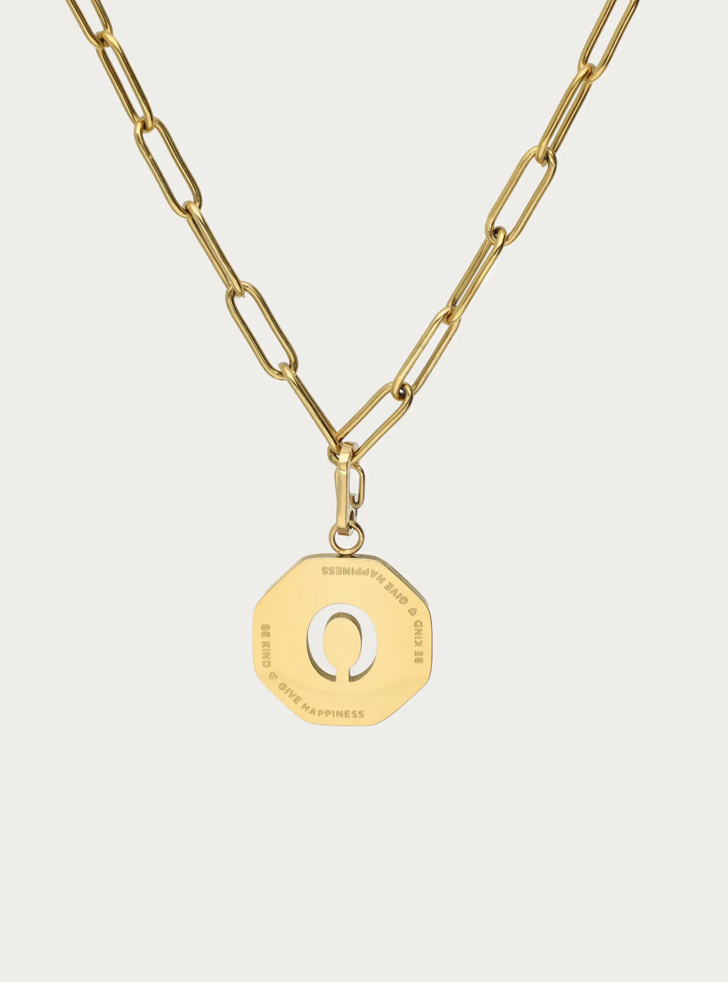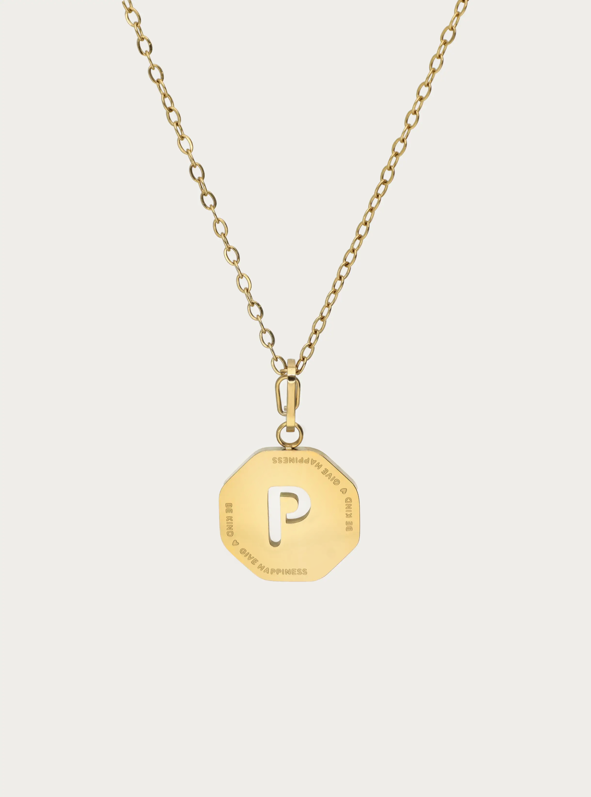 Ketting kleine schakel met octagon initiaal bedel 'be kind'
