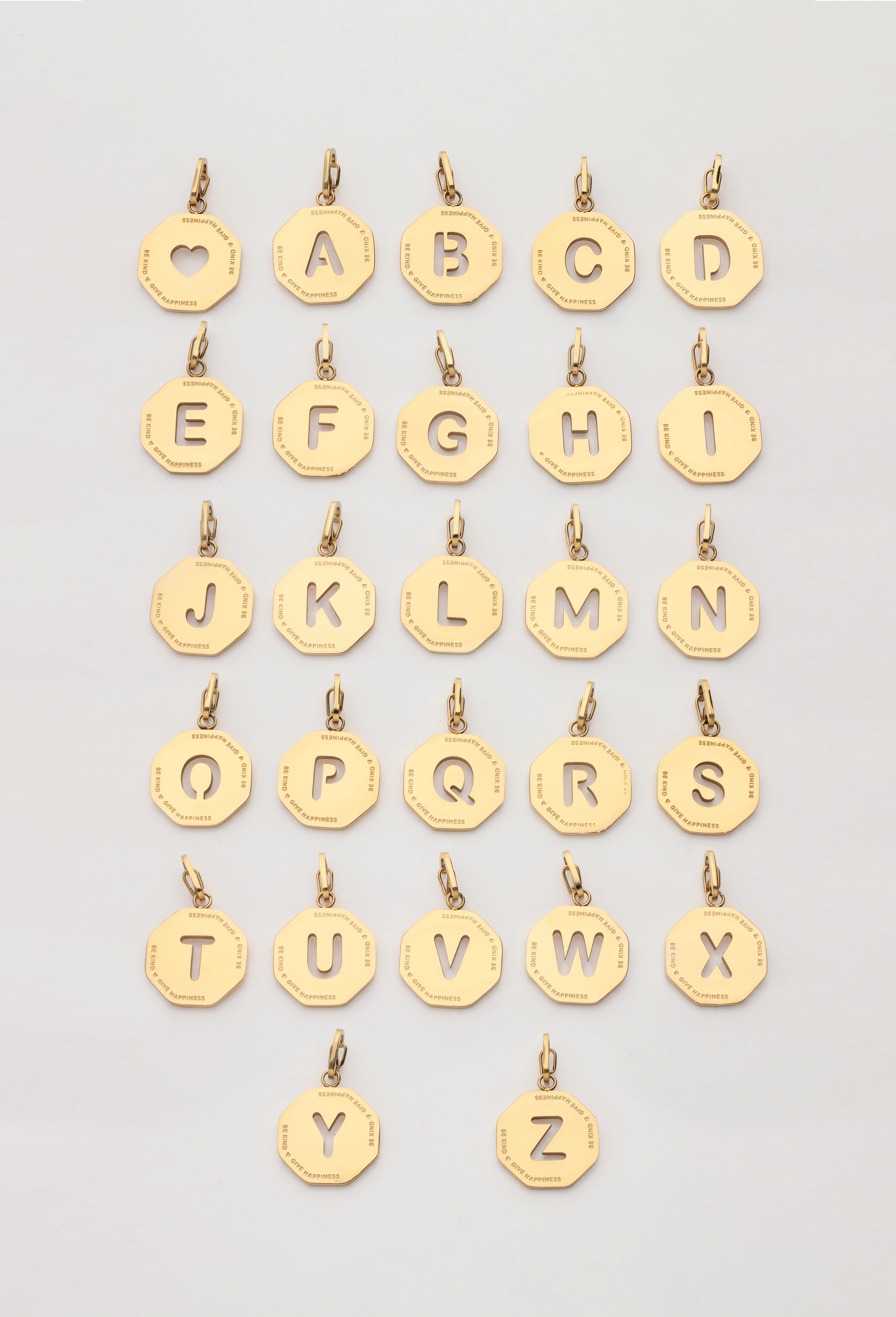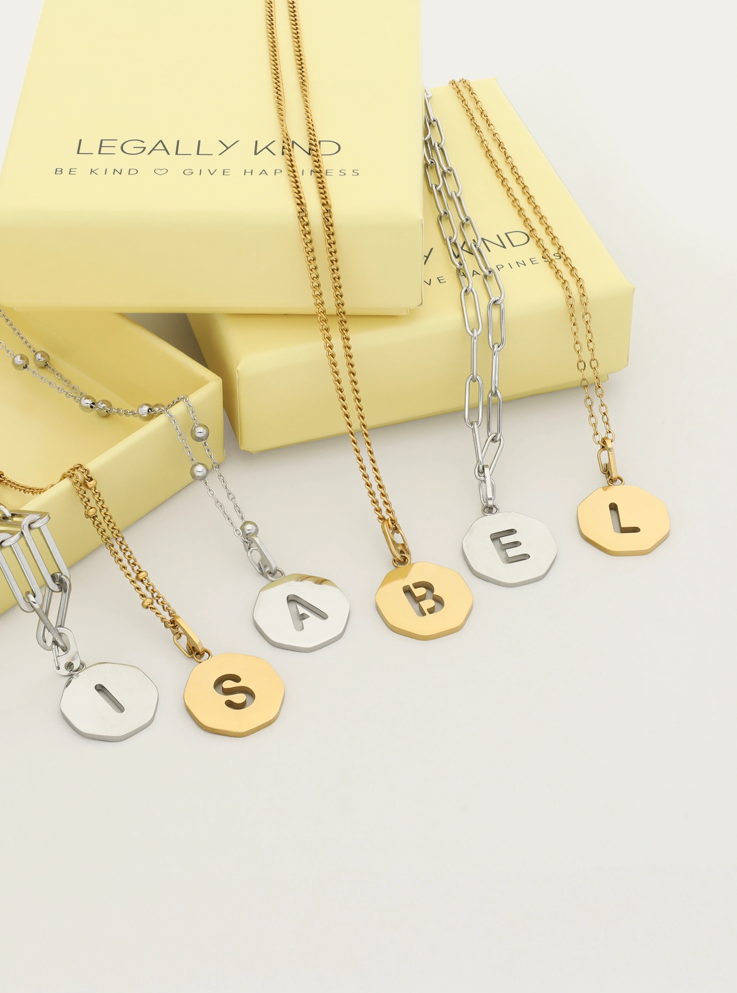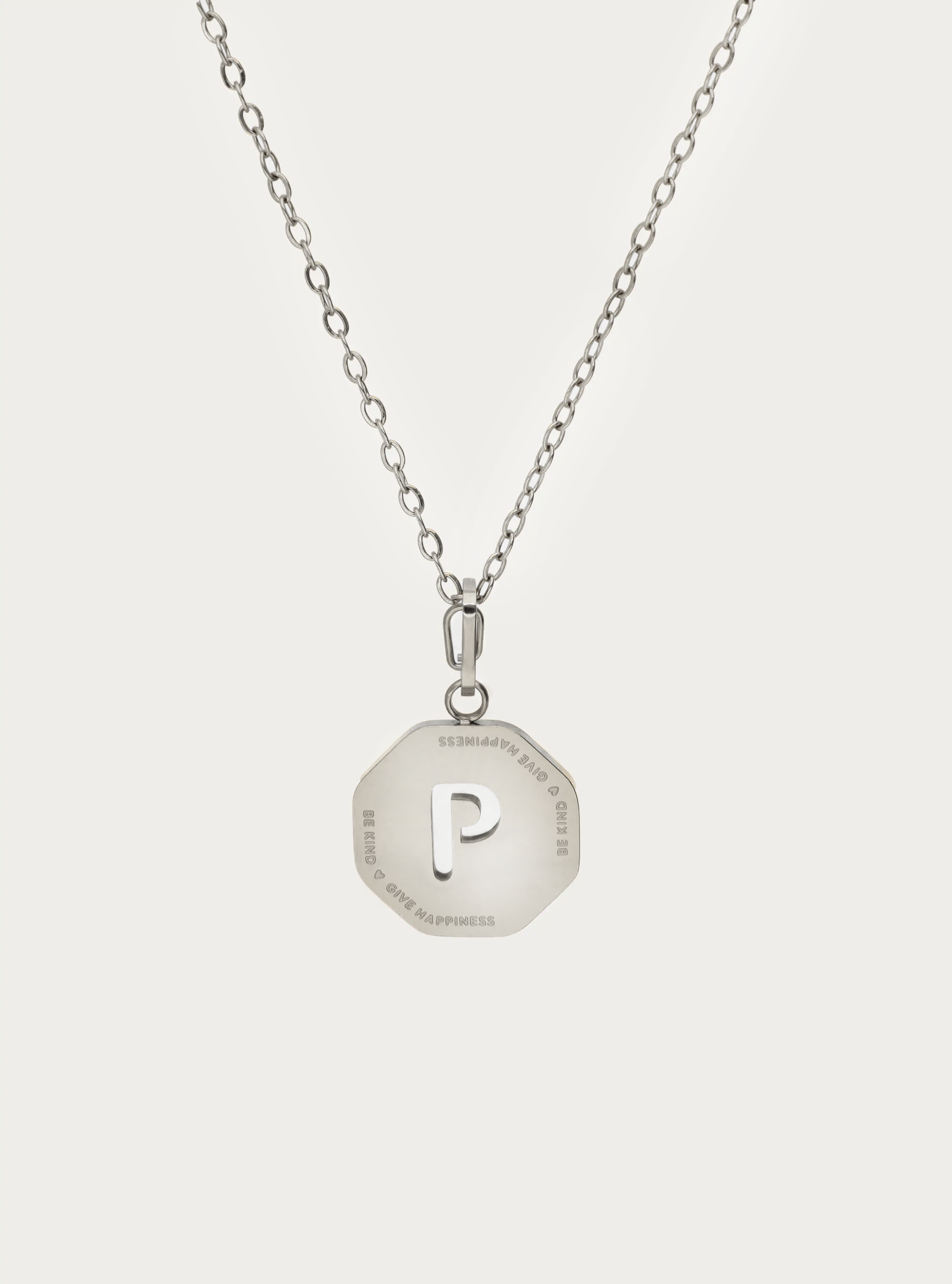 Ketting kleine schakel met octagon initiaal bedel 'be kind'