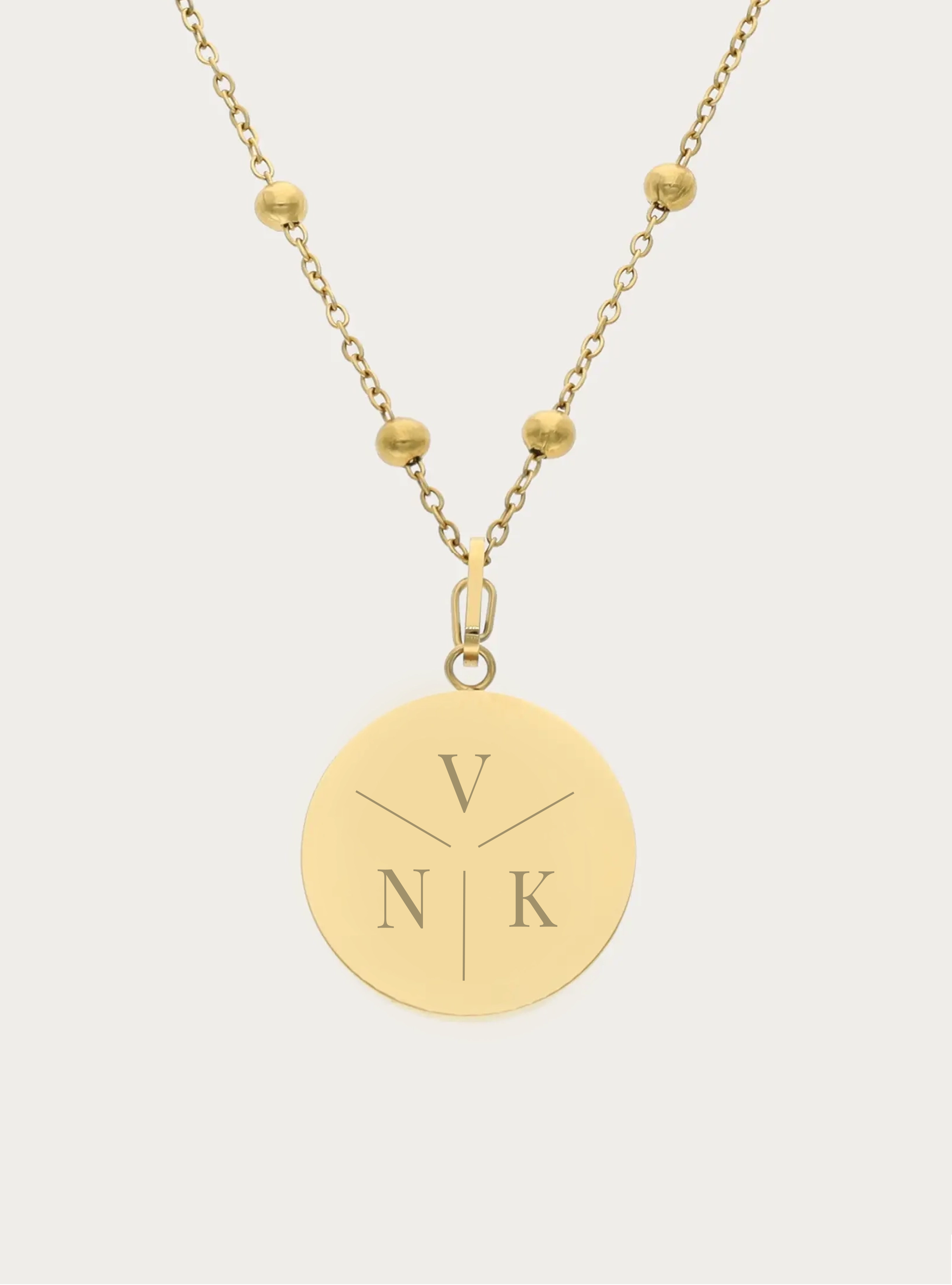 Bolletjesketting (groot) met graveerbare ronde bedel - 20 mm - 3 of 4 initialen met kruis