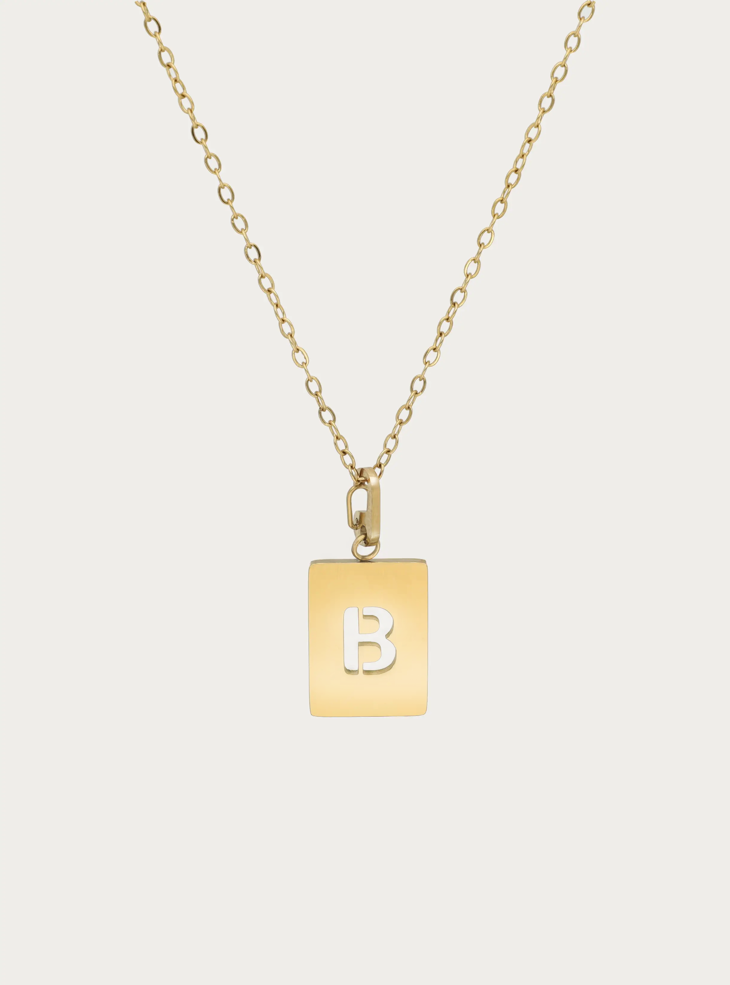 Fijne schakelketting met rechthoekige initiaal bedel