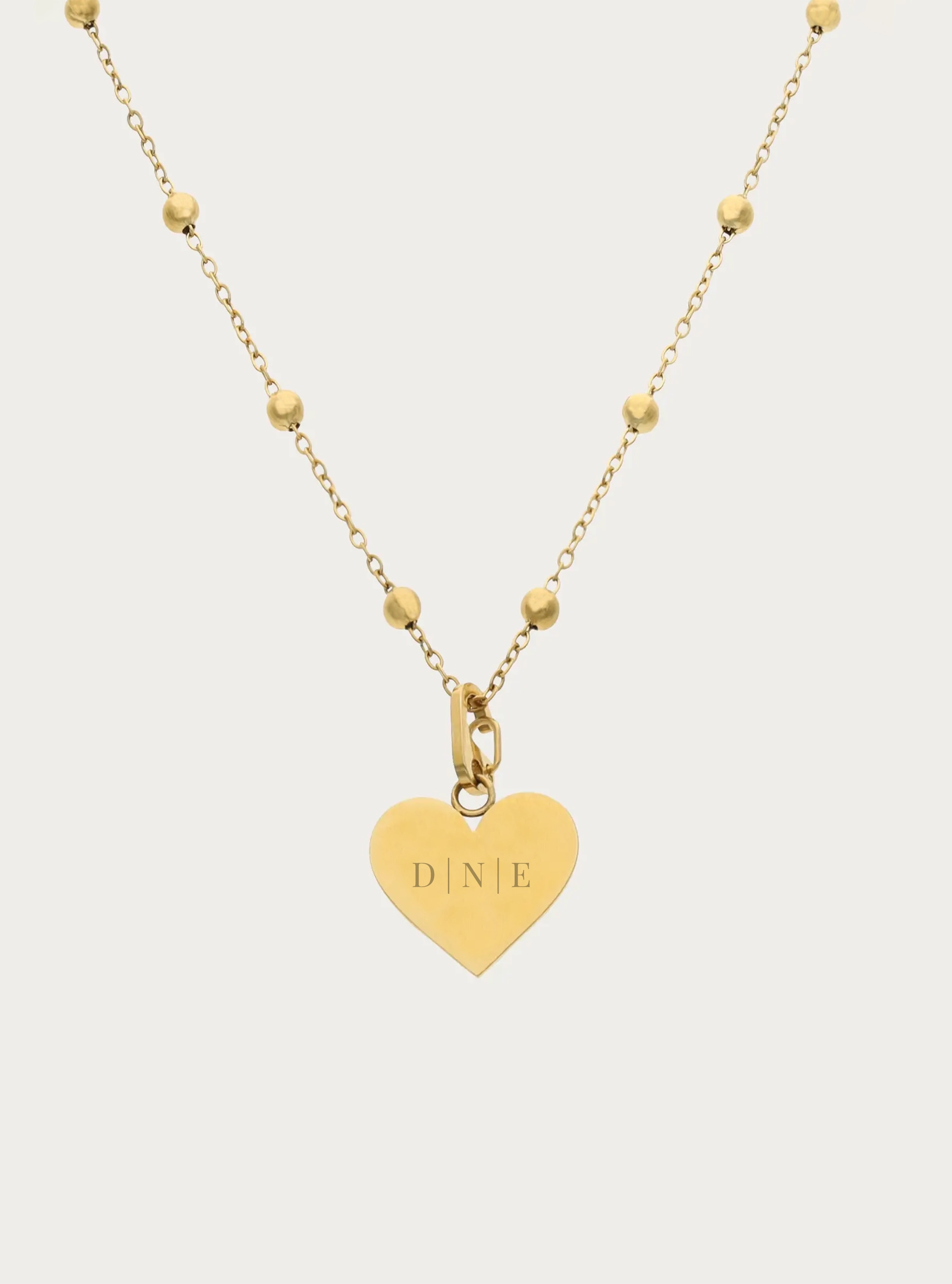 Bolletjesketting (groot) met graveerbare hartvormige bedel - 14 mm - 3 initialen