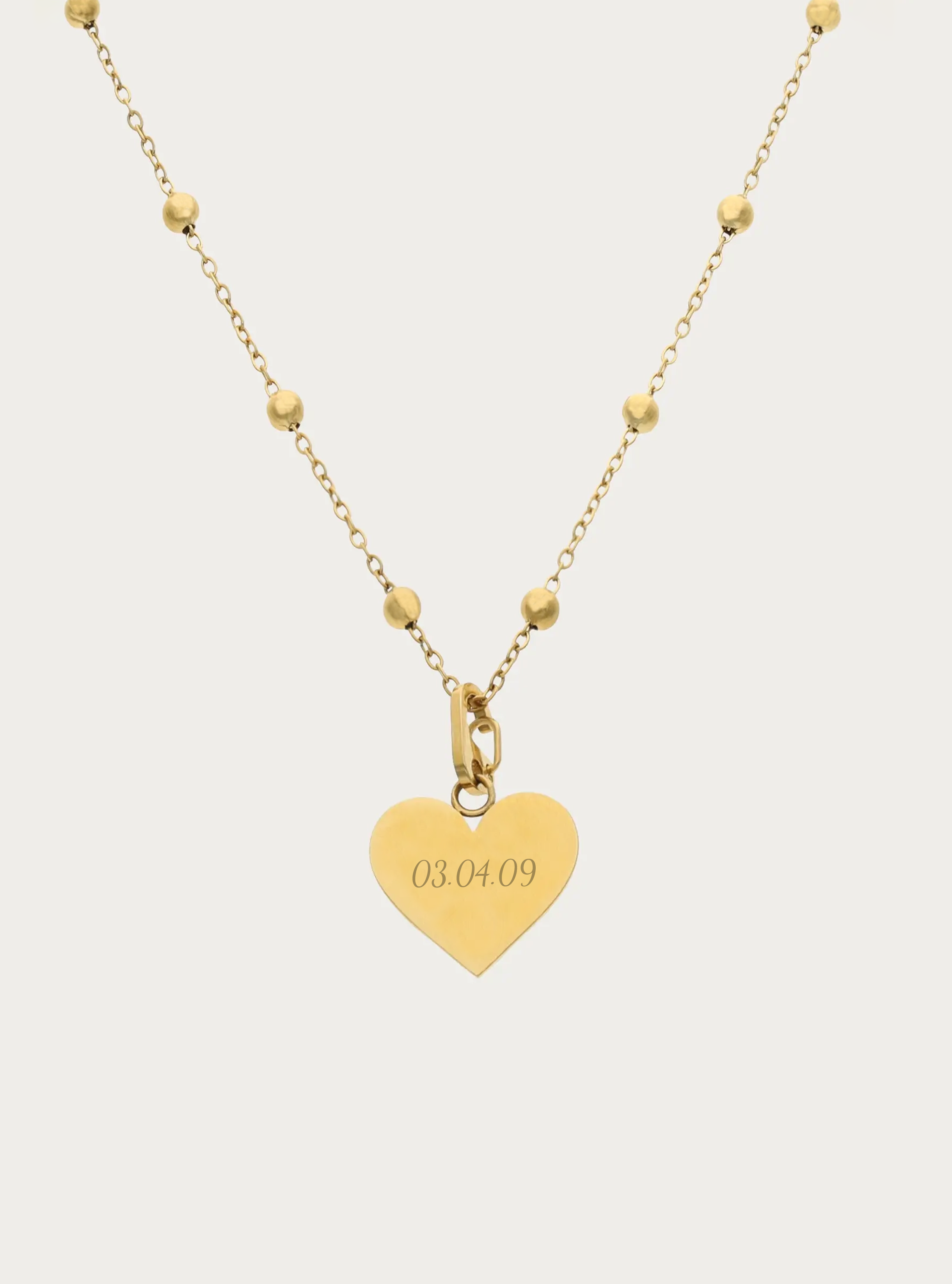 Bolletjesketting (groot) met graveerbare hartvormige bedel - 27 mm - datum